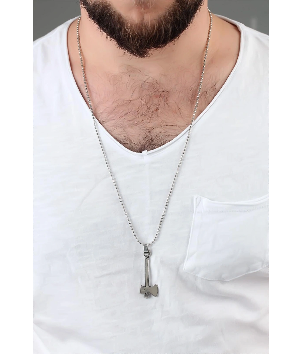 Havalı kombinler Gümüş Renk Balta Erkek Kolye ile hareketlenecek.