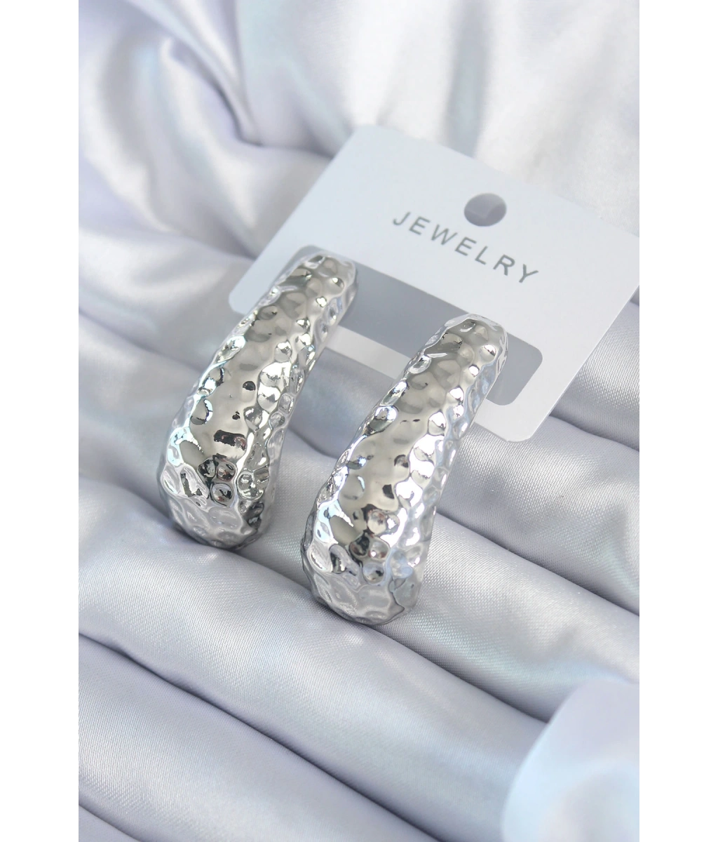 Shoecide Gümüş Renk İşleme Detay Pirinç Kadın Küpe