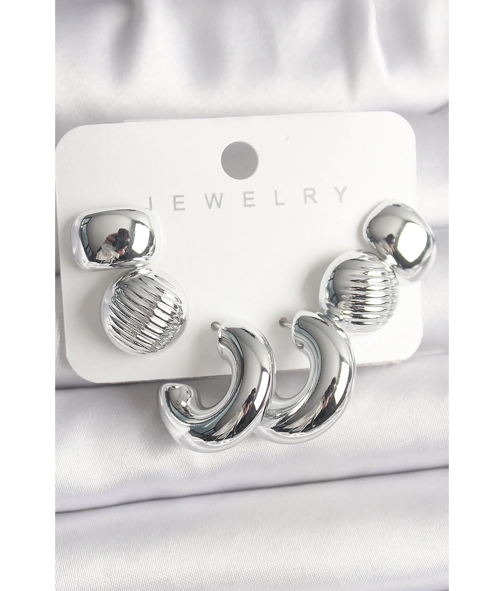 Shoecide Gümüş Renk Pirinç 6'lı Kadın Küpe Seti