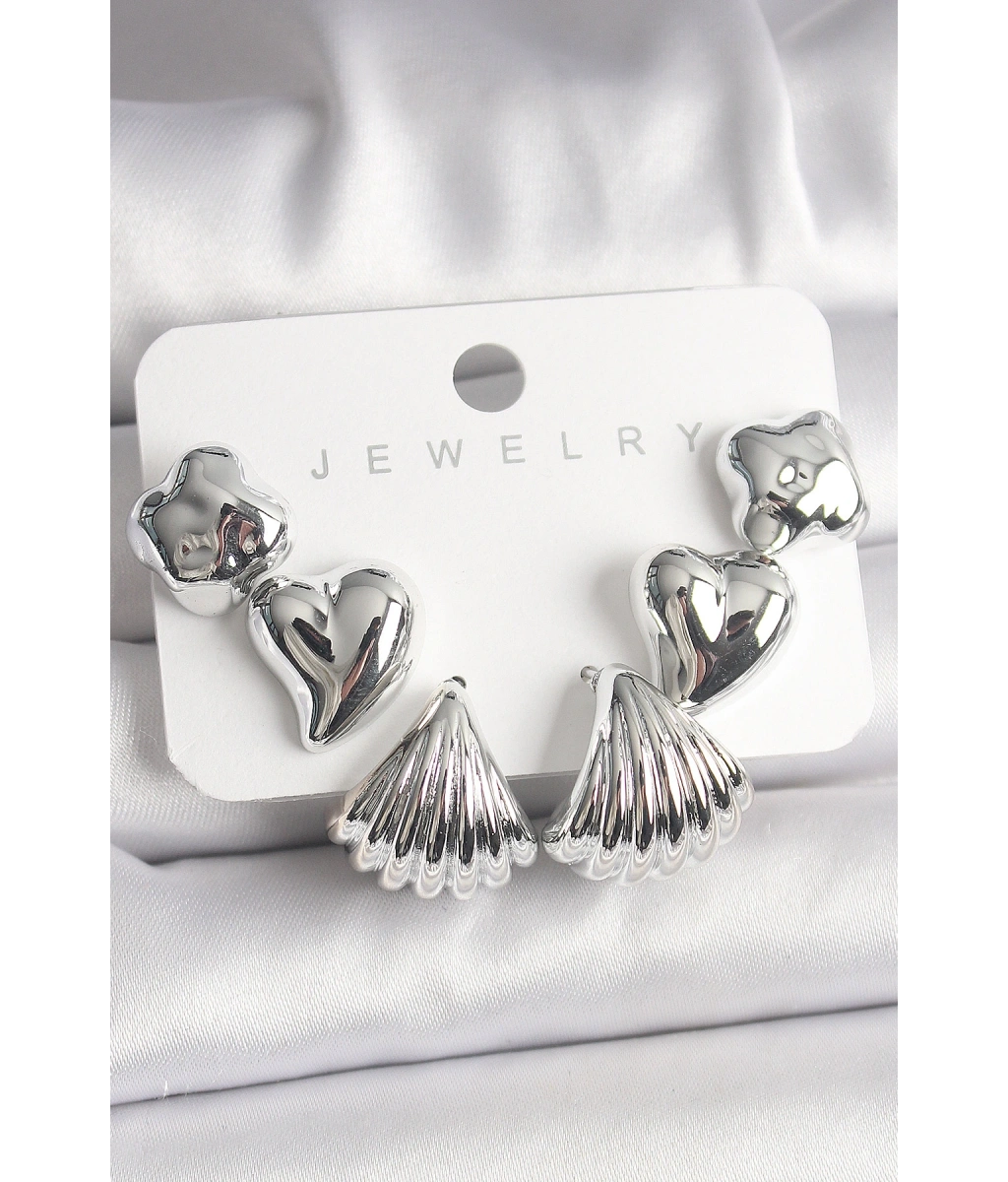 Shoecide Gümüş Renk Yonca Kalp Deniz Kabuğu Figür Ccb Kadın Küpe Seti