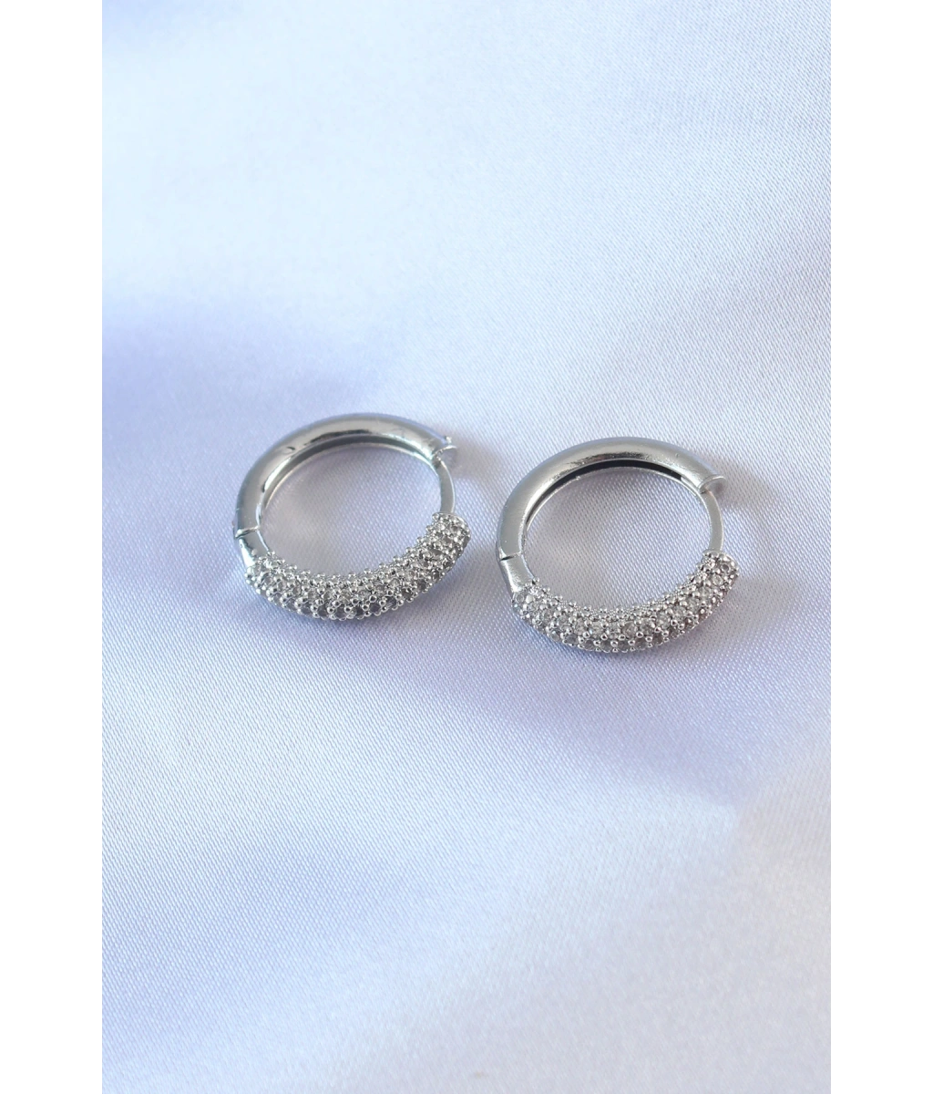 Shoecide Gümüş Renk Zirkon Taşlı Halka Model Pirinç Kadın Küpe