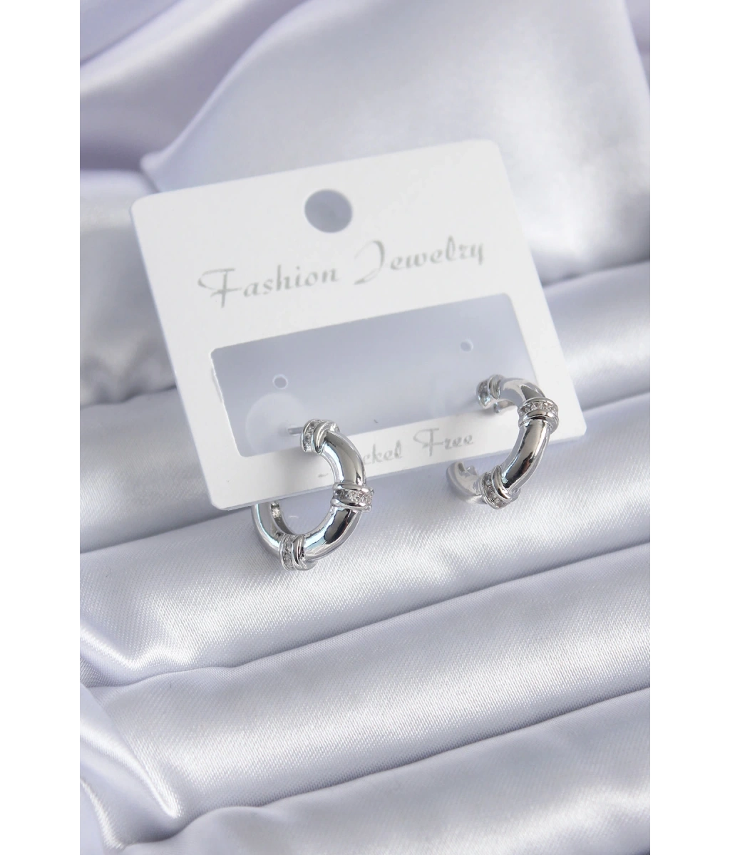 Shoecide Gümüş Renk Zirkon Taşlı Halka Model Pirinç Kadın Küpe