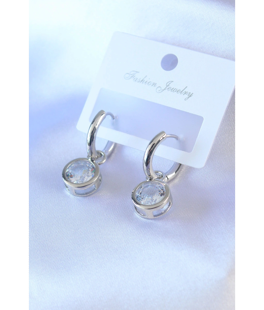 Shoecide Gümüş Renk Zirkon Taşlı Pirinç Kadın Küpe