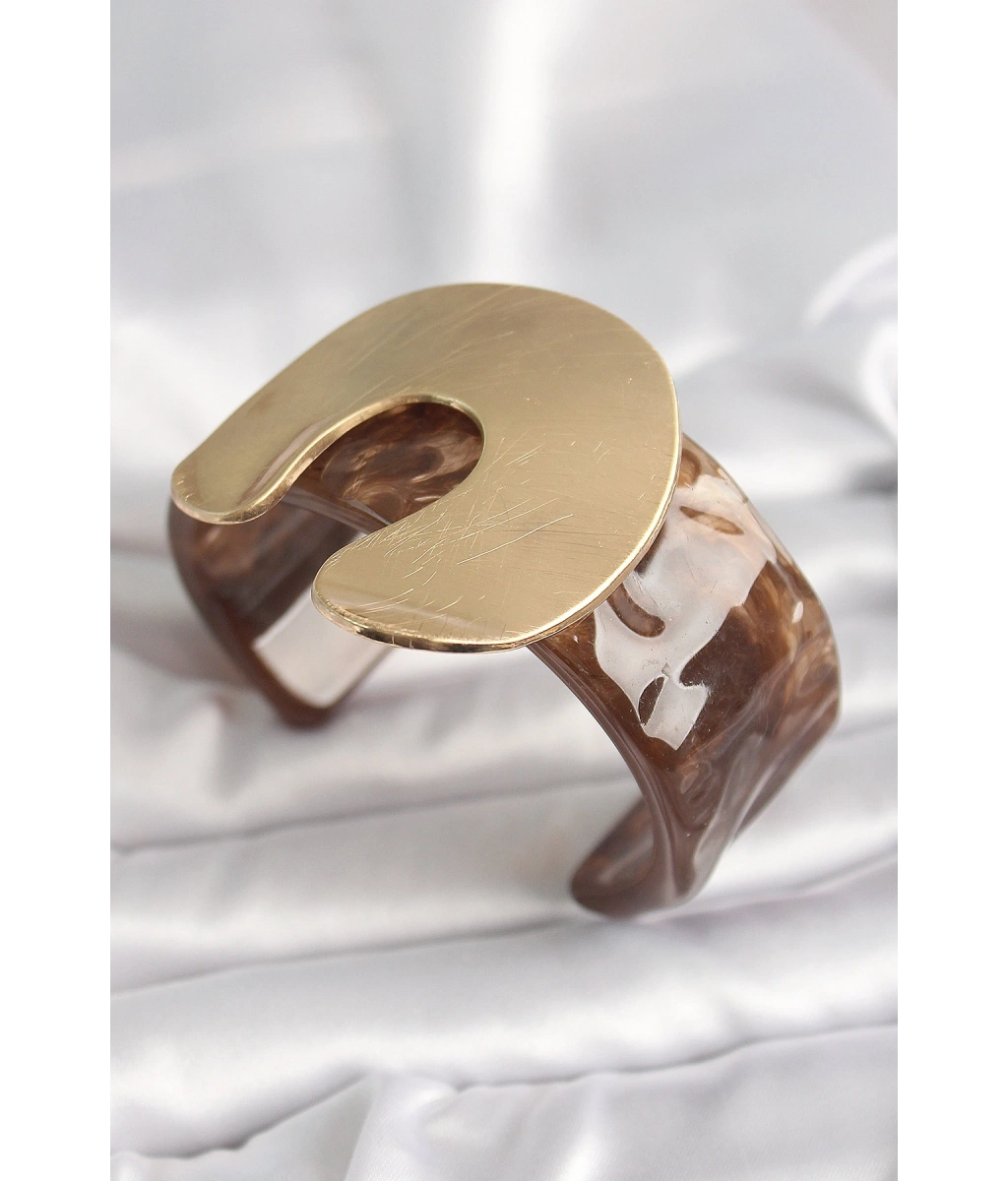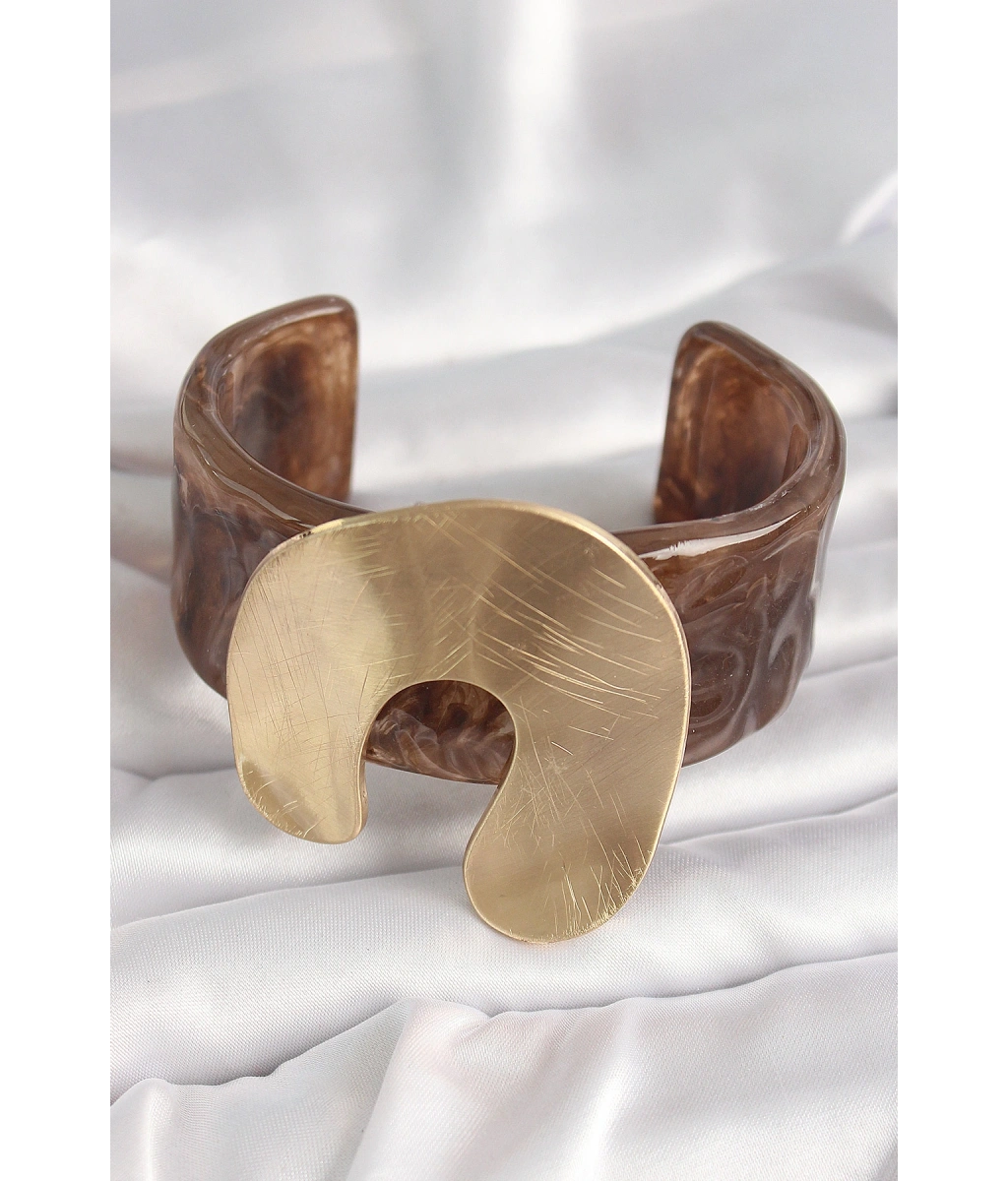 Shoecide Kahverengi Mermer Desen Akrilik Plastik Gold Nal Model Plaka Vintage Kadın Bilezik