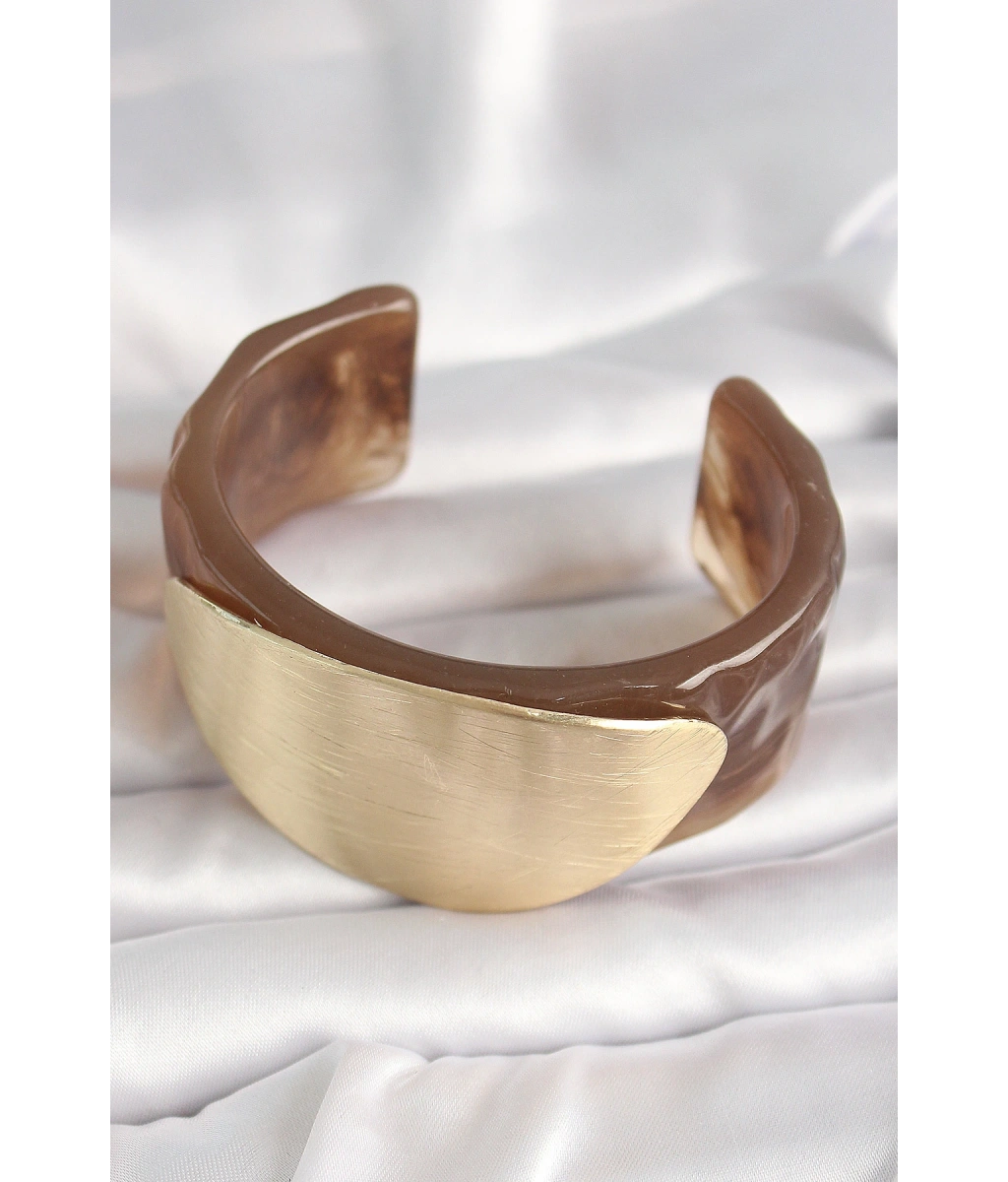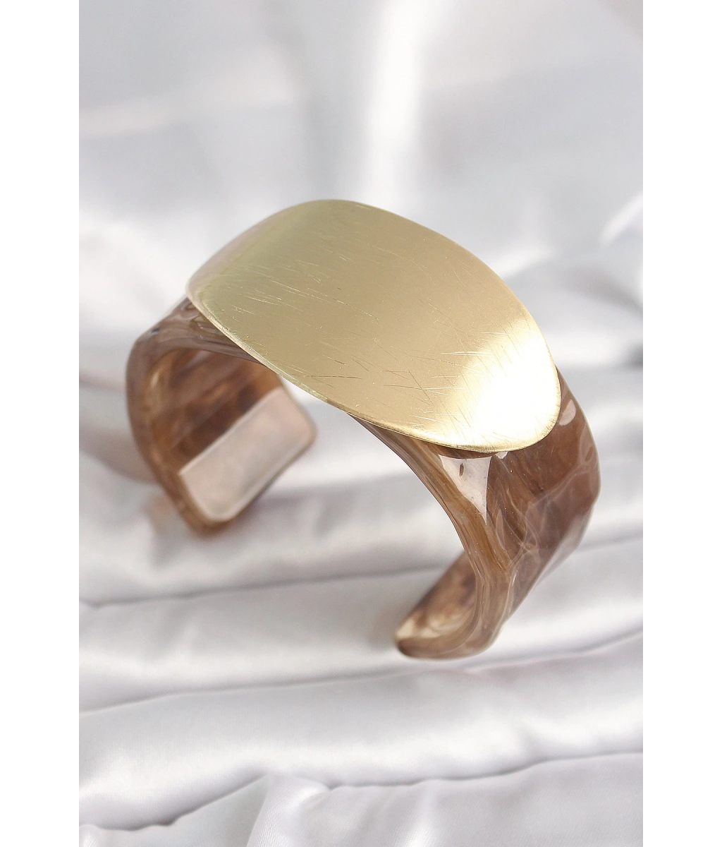 Shoecide Kahverengi Mermer Desen Akrilik Plastik Gold Oval Plaka Model Vintage Kadın Bilezik