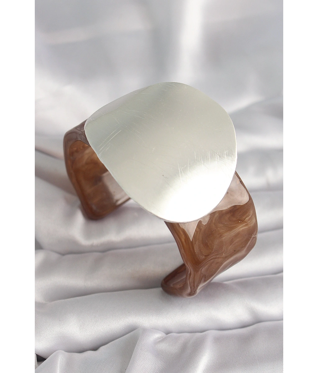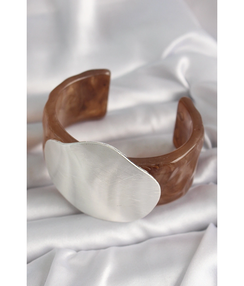 Shoecide Kahverengi Mermer Desen Akrilik Plastik Gümüş Plaka Model Vintage Kadın Bilezik