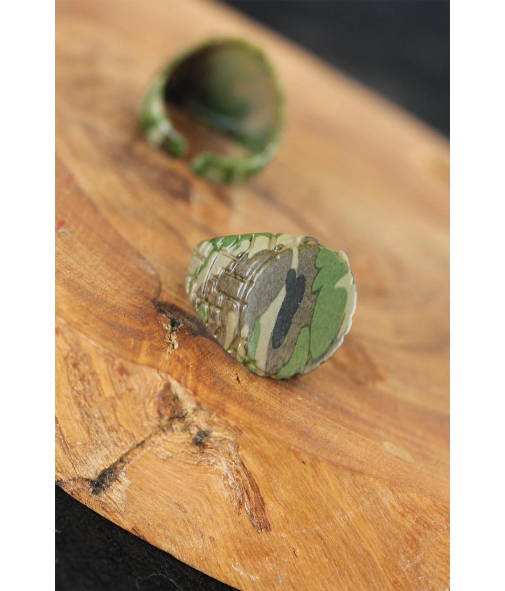 Yeşil renkli Kamuflaj Desenli Ayarlamalı Erkek Yüzük ile tarzınız öne çıkacak.