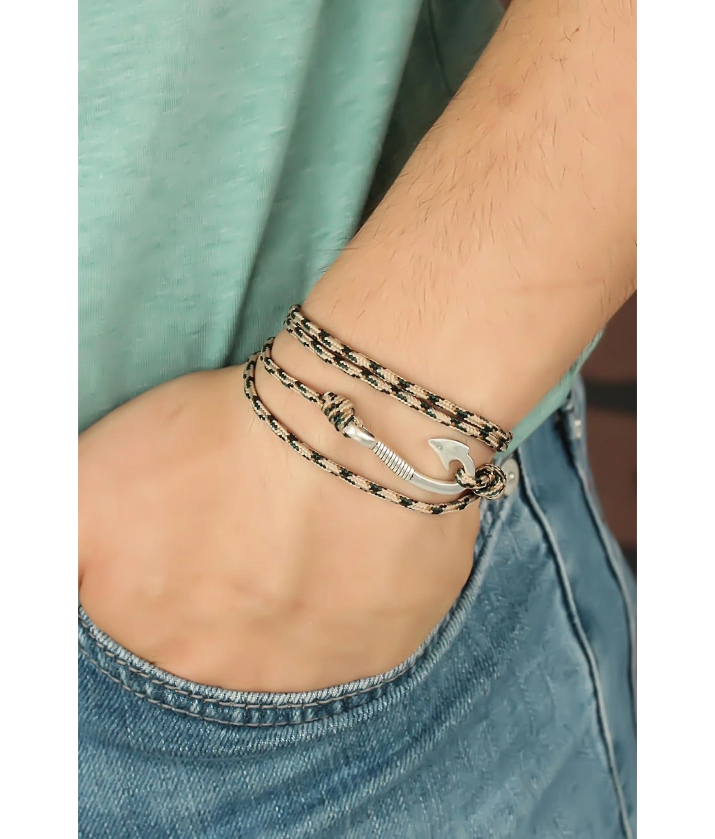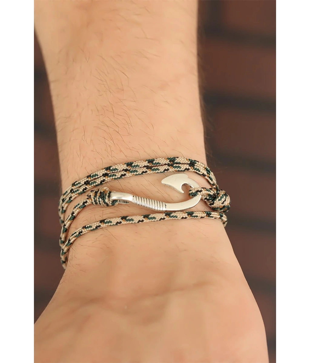 Trend tasarımlı Krem Renk Çizgi Desenli Metal Kancalı Erkek Bileklik modeline bayılacaksınız.