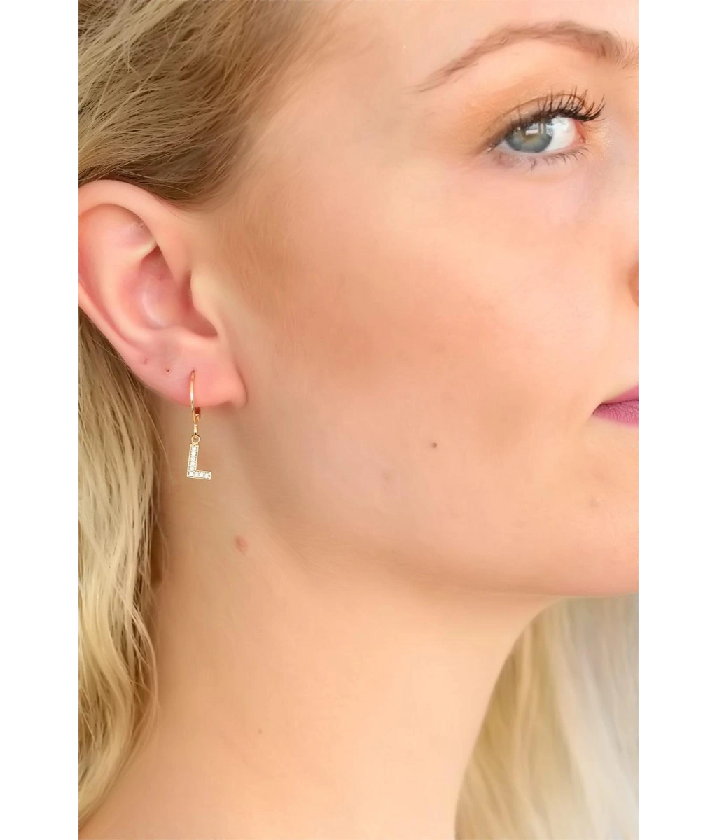 Gold Renk Zirkon Taşlı L Harf Bayan Küpe