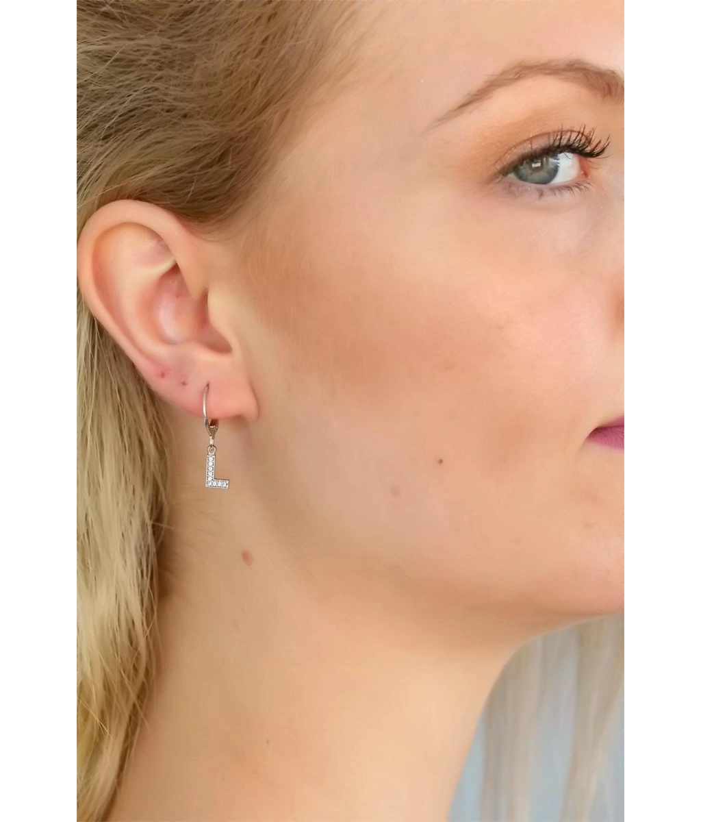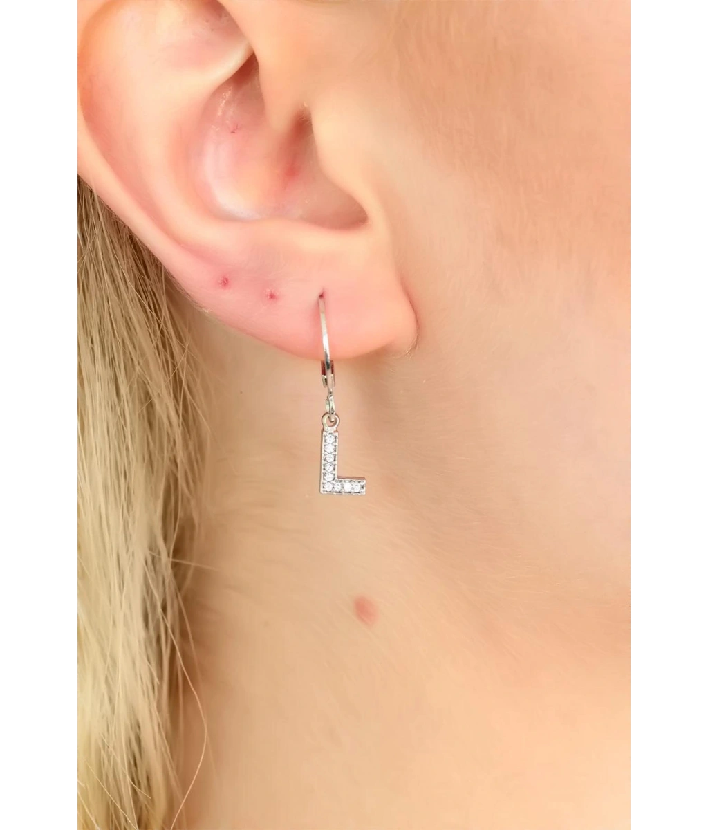 Silver Renk Zirkon Taşlı L Harf Bayan Küpe