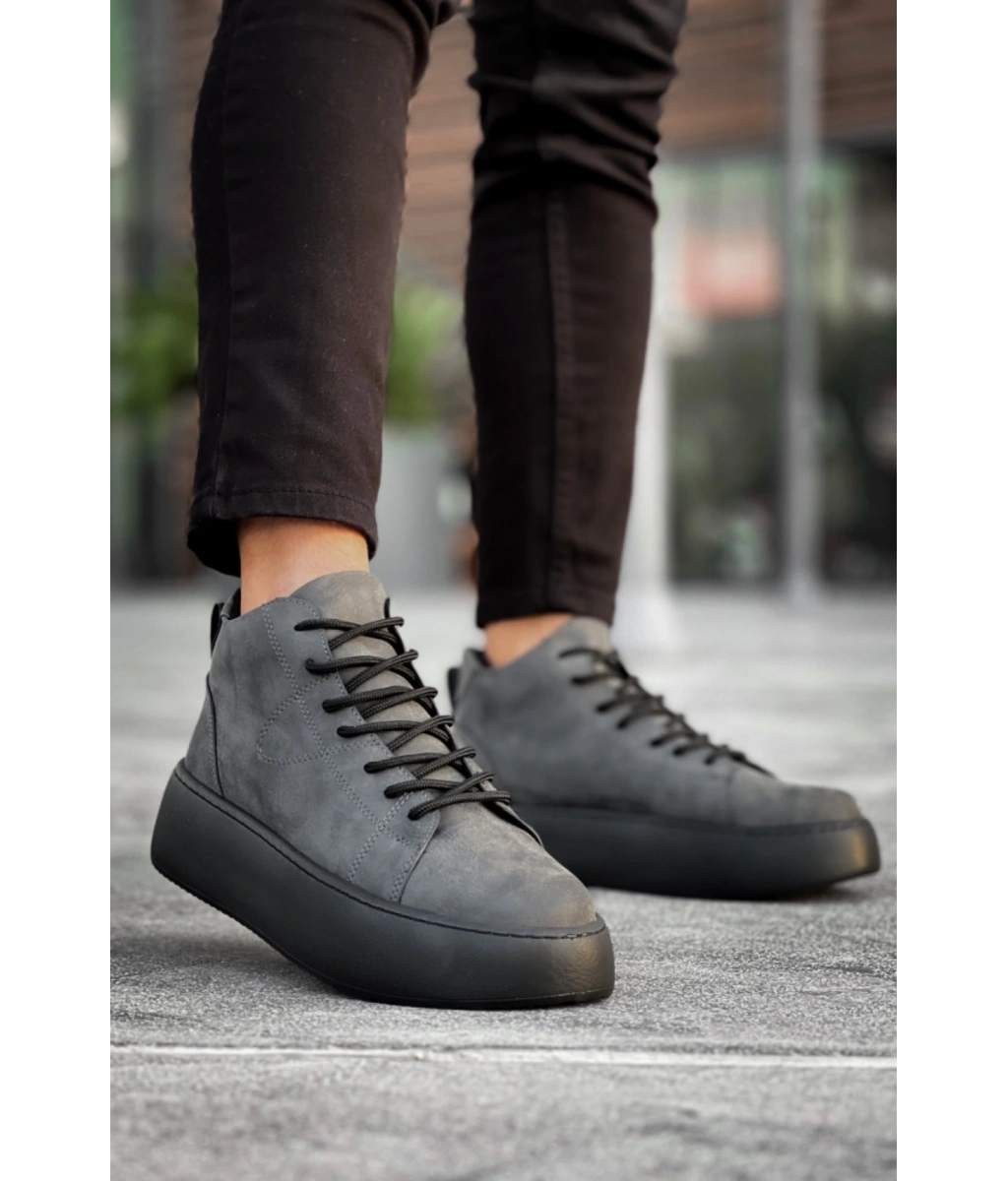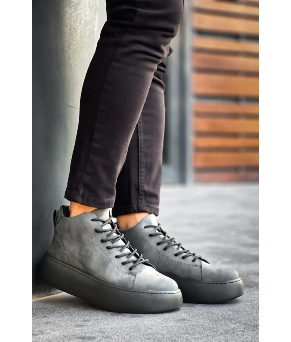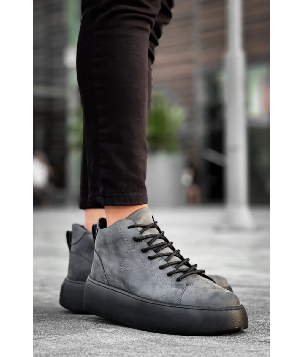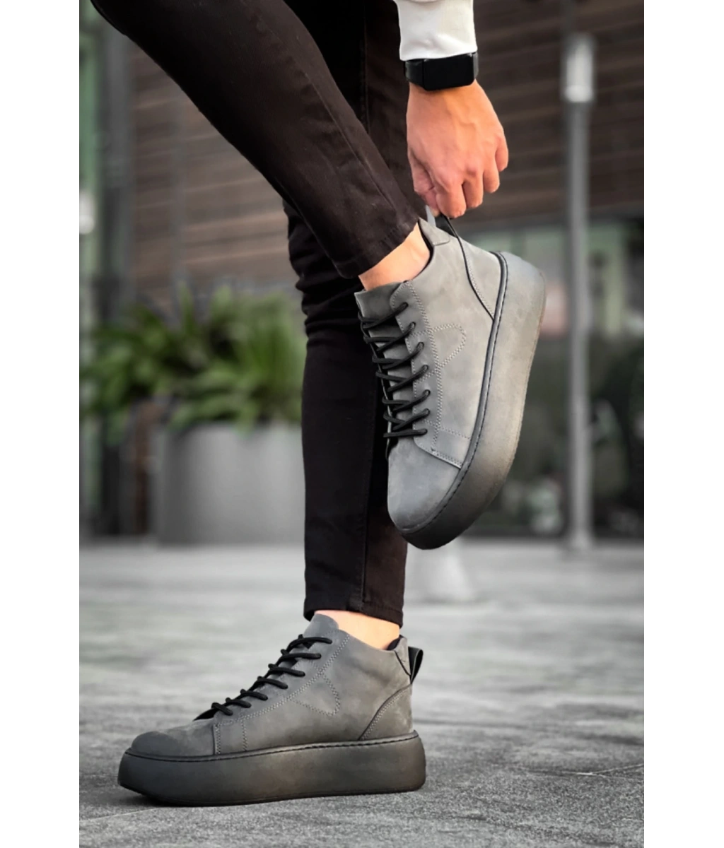 Shoecide Sb0321 Gizli Bağcıklı Erkek Yüksek Taban Füme Spor Bot
