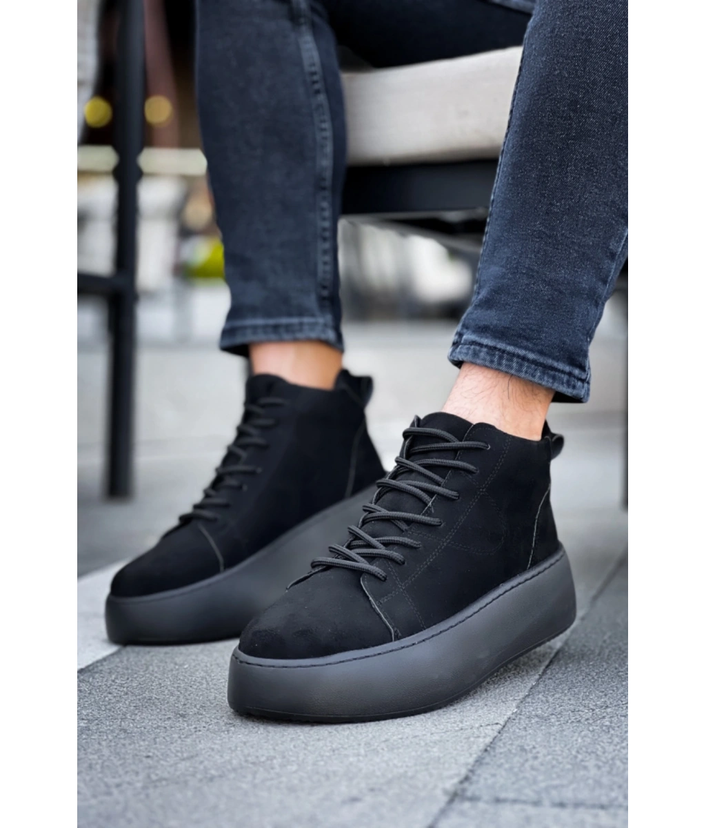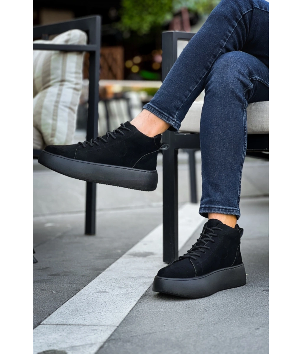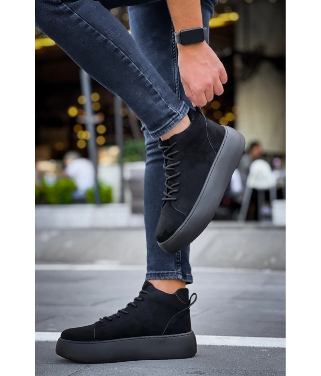 Shoecide Sb0401 Bağcıksız Rahat Yüksek Siyah Taban Siyah Süet Erkek Spor Yarım Bilek Bot