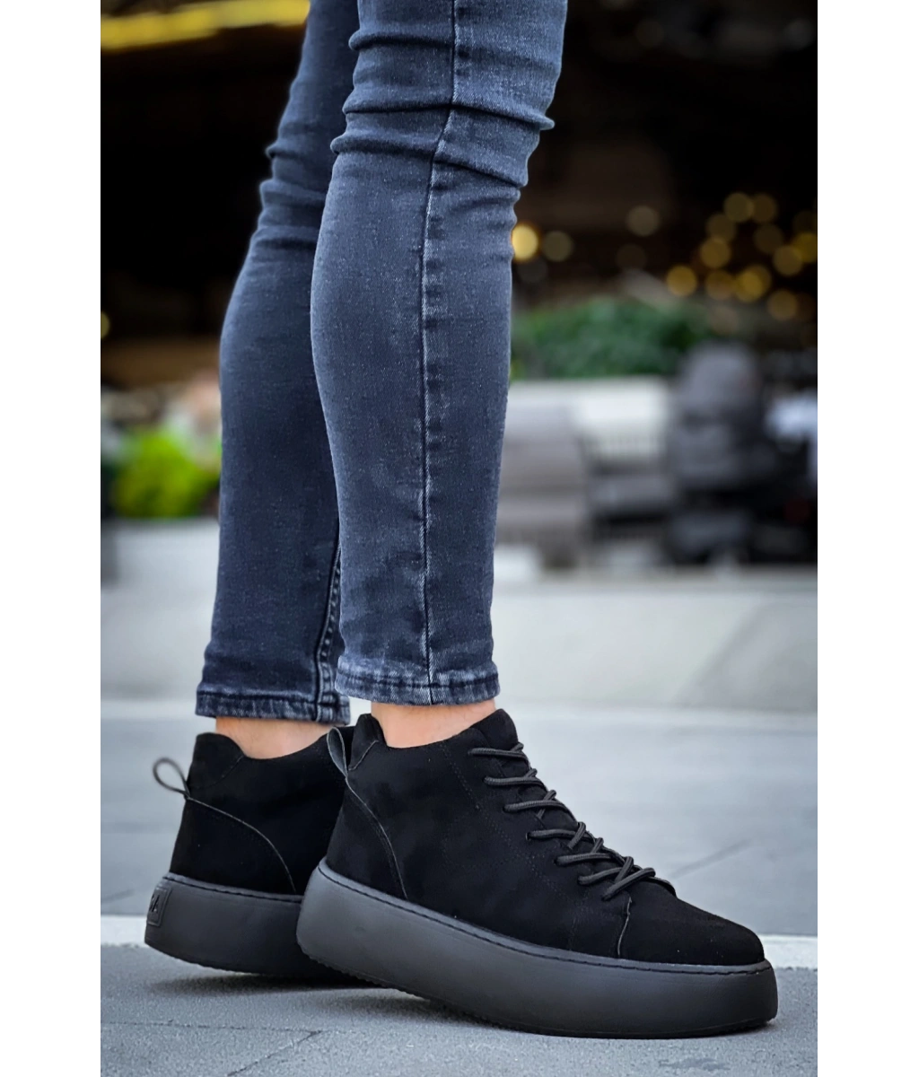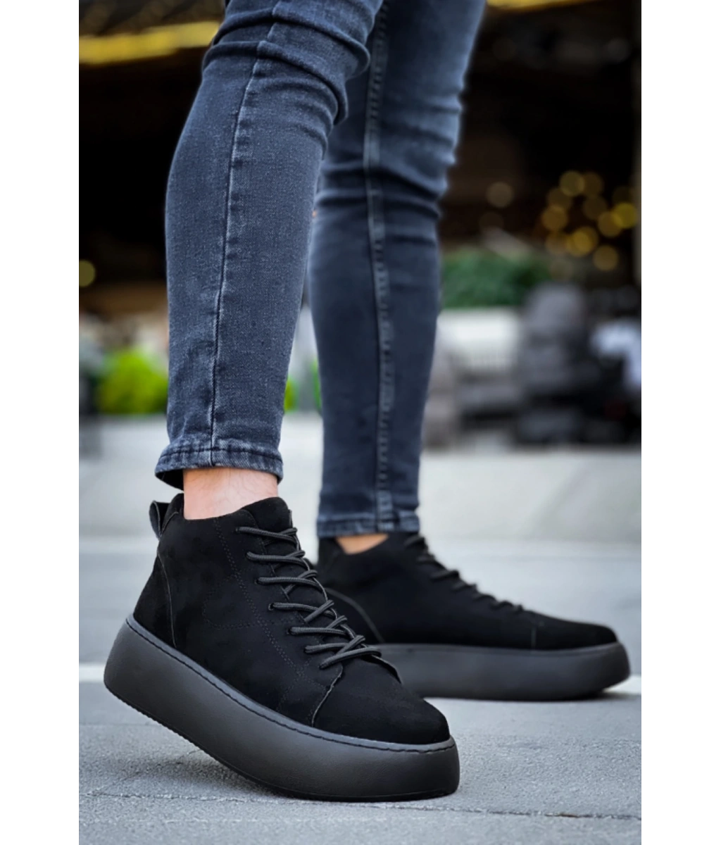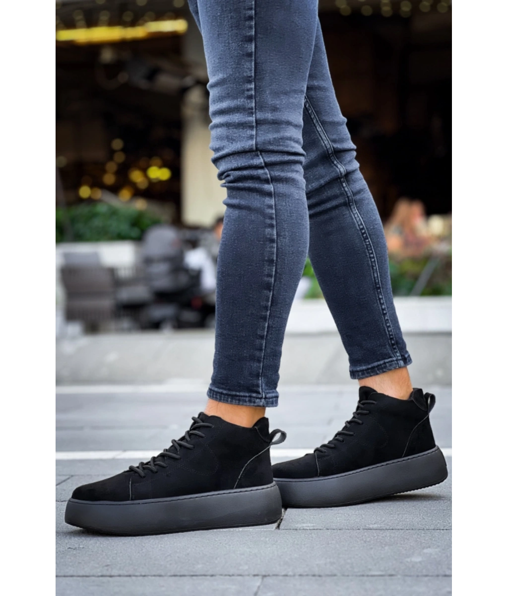 Shoecide Sb0401 Bağcıksız Rahat Yüksek Siyah Taban Siyah Süet Erkek Spor Yarım Bilek Bot