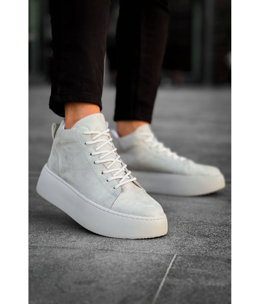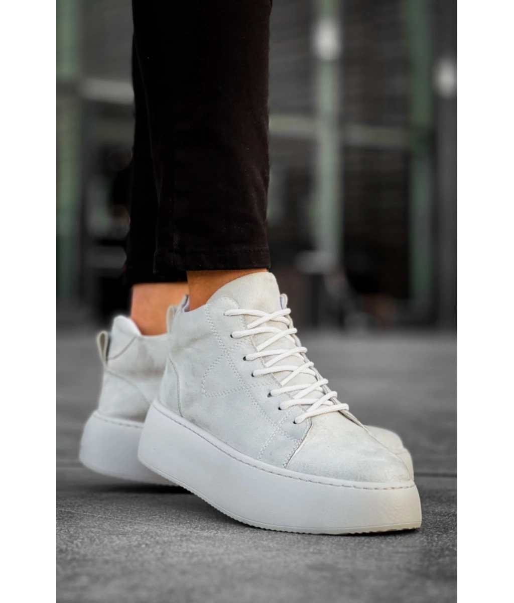 Shoecide Wg032 Beyaz Bağcıklı Sneakers Yarım Bilek Bot