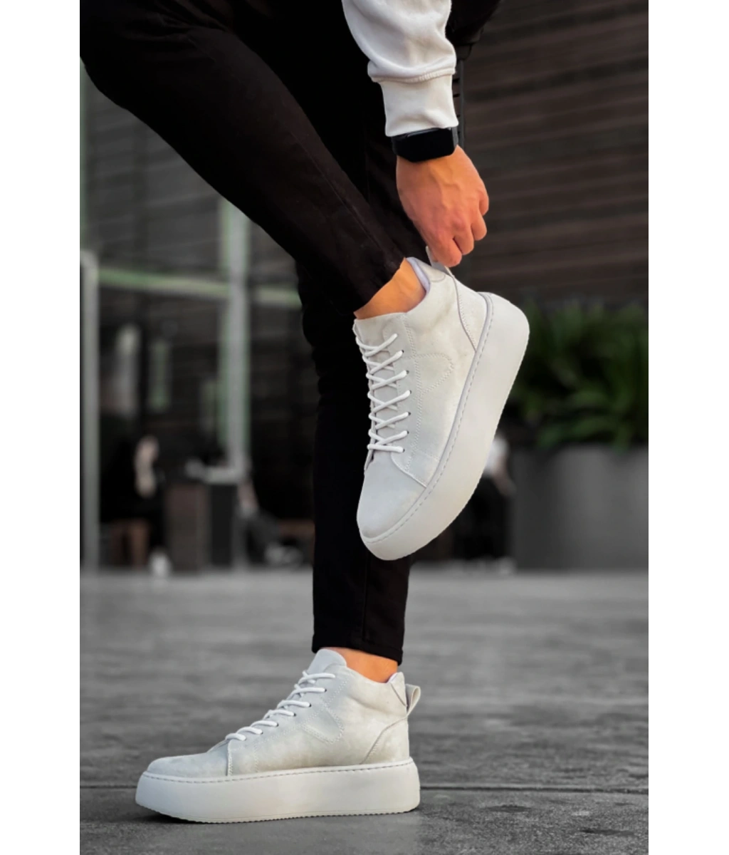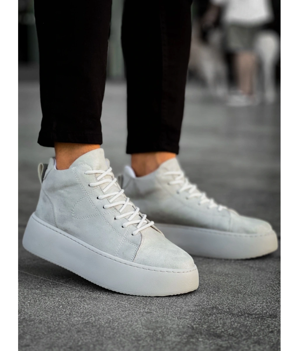 Shoecide Le10 Bağcıklı Erkek Yüksek Taban İthal Gri Süet Spor Bot