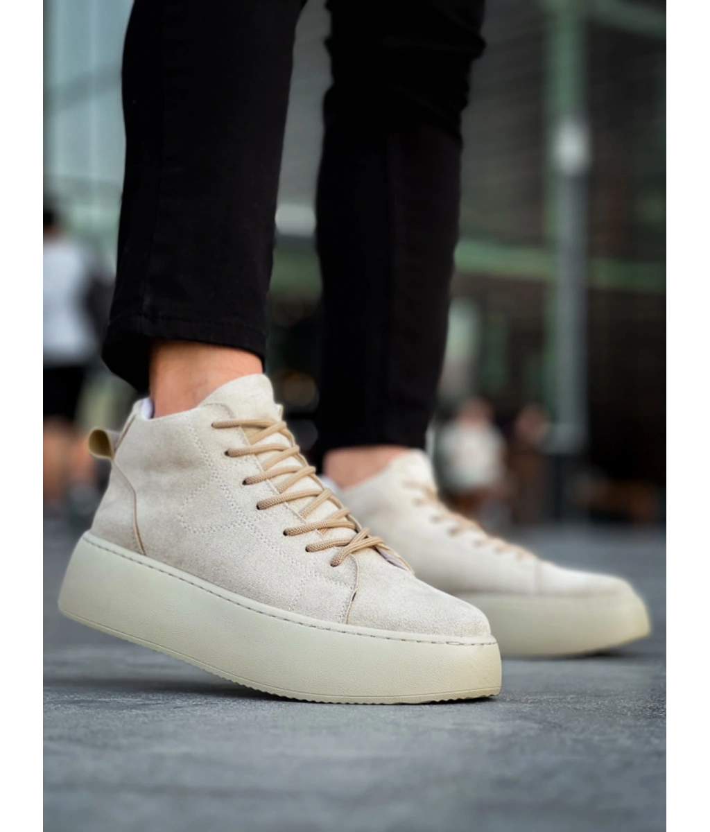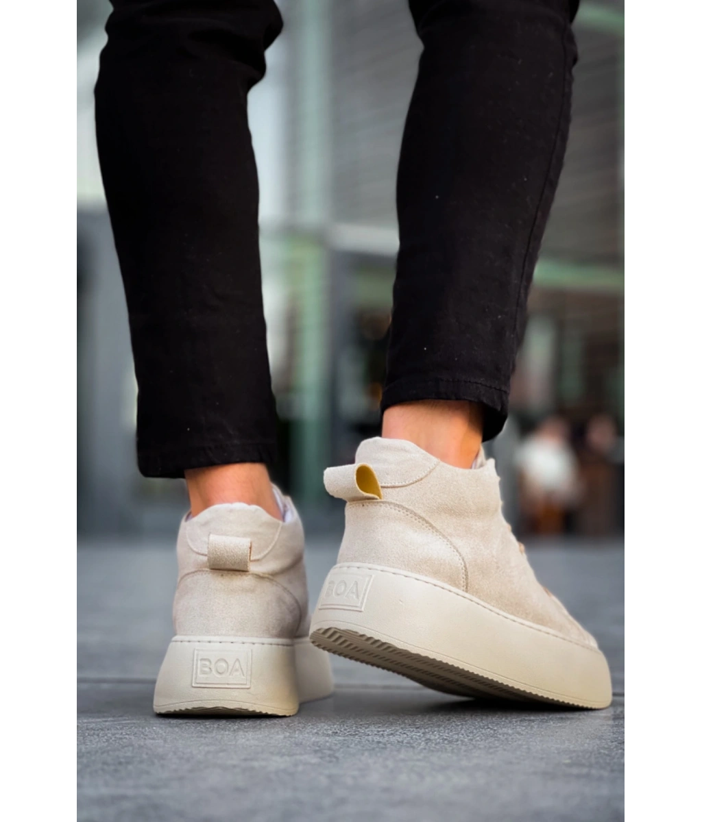 Shoecide Le10 Bağcıklı Erkek Yüksek Taban İthal Süet Krem Spor Bot