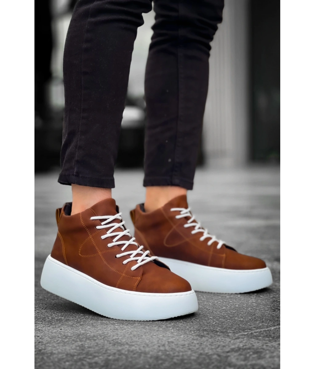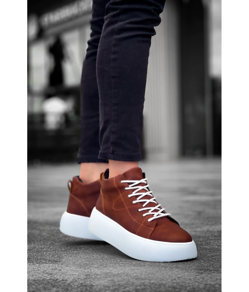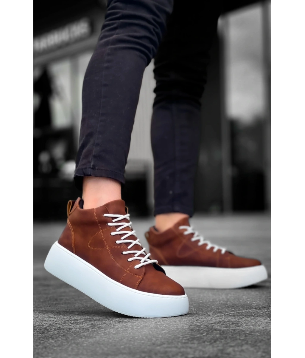 Shoecide Le10 Bağcıklı Erkek Yüksek Taban Taba Cilt Spor Bot