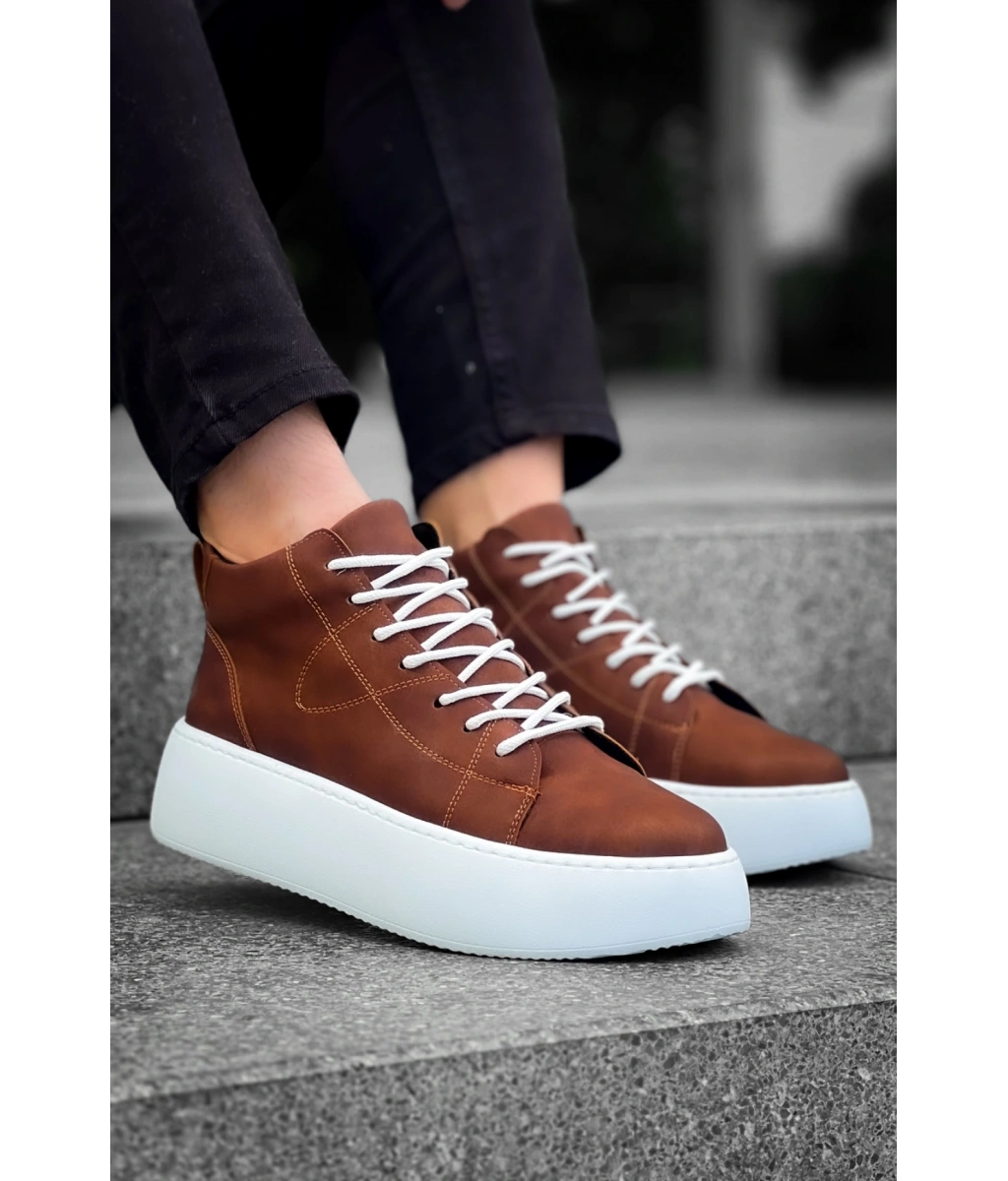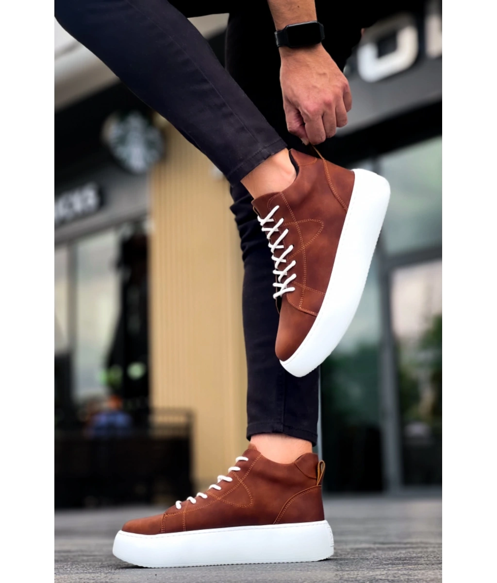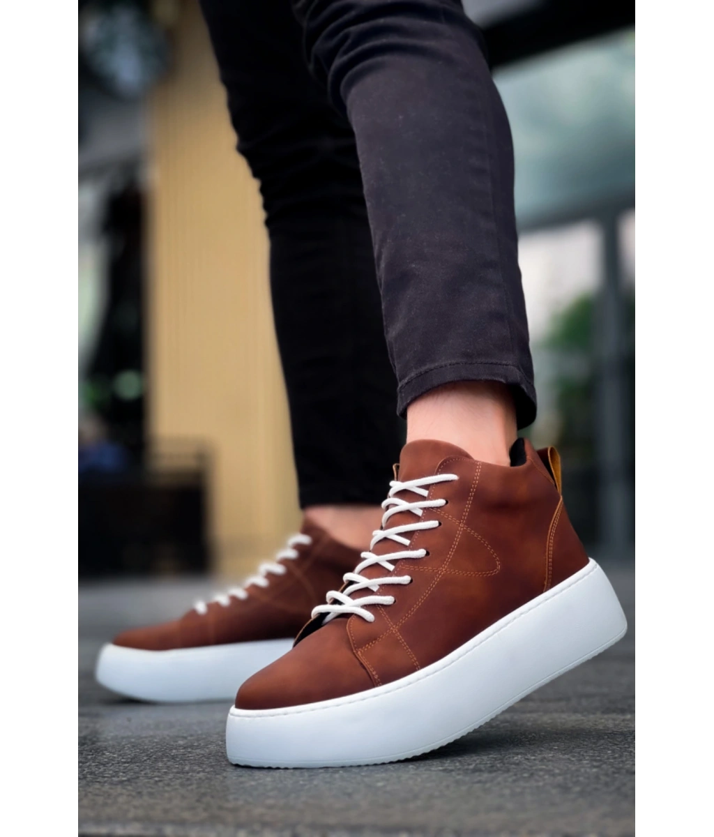 Shoecide Le10 Bağcıklı Erkek Yüksek Taban Taba Cilt Spor Bot