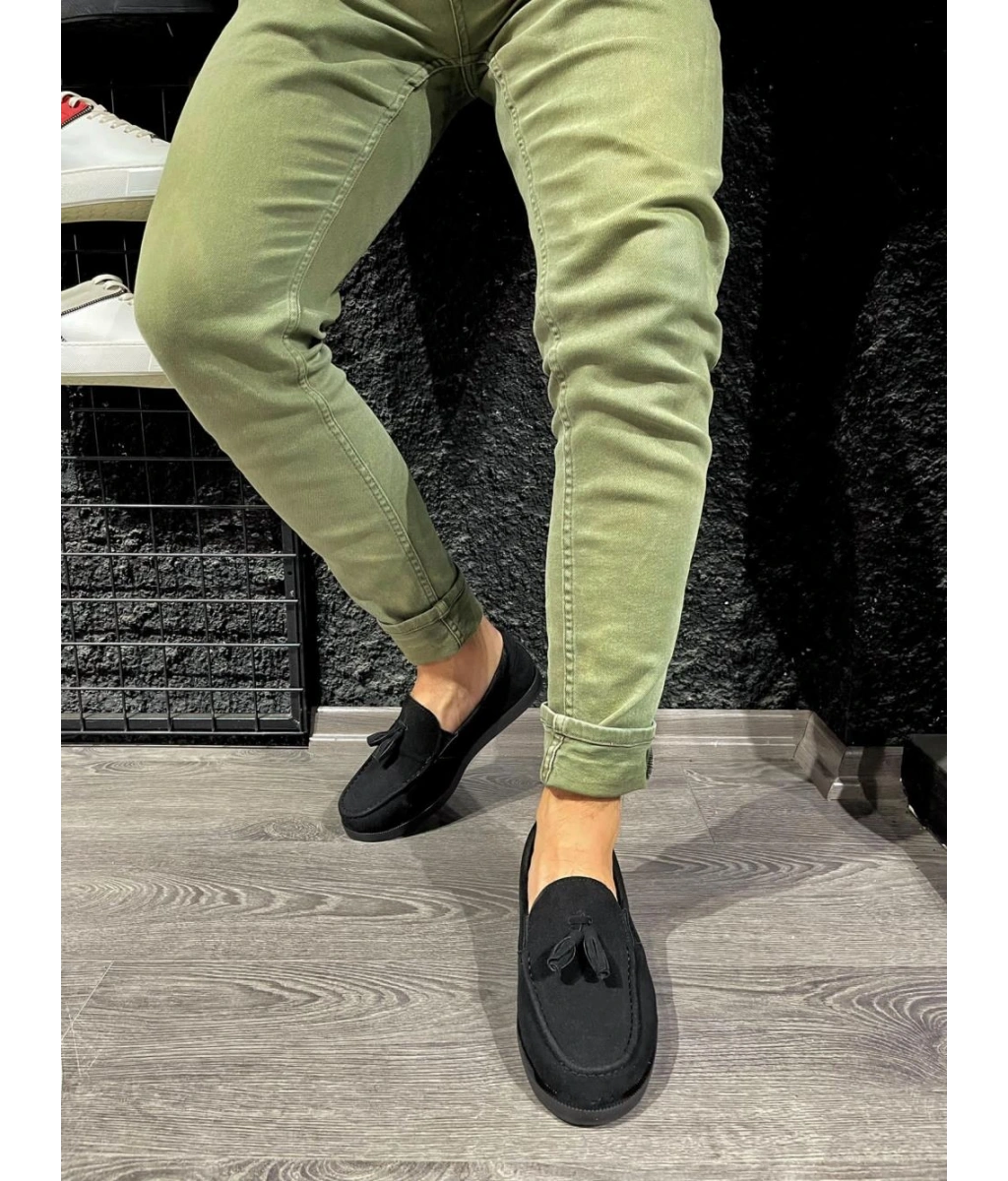 Swo154 Blaze Bağcıksız Püsküllü Cilt Erkek Günlük Spor Klasik Ayakkabı Cst - Siyah