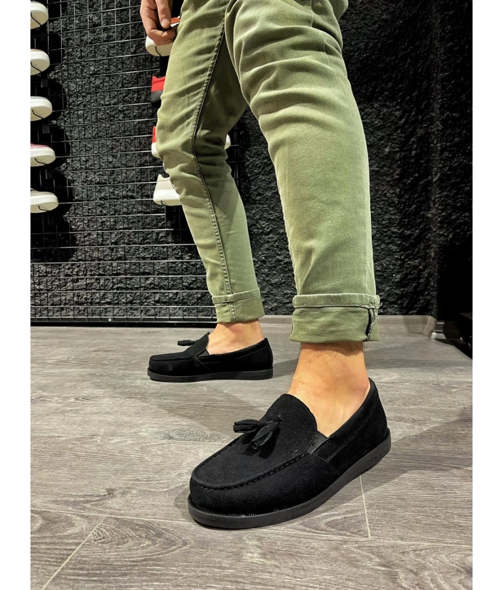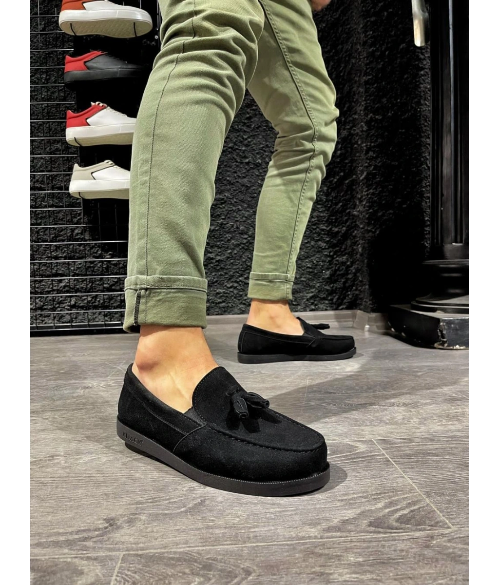 Swo154 Blaze Bağcıksız Püsküllü Cilt Erkek Günlük Spor Klasik Ayakkabı Cbt - Siyah