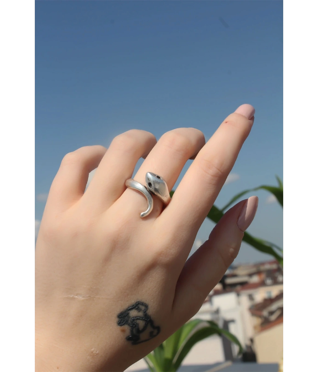 Shoecide Metal Yılan Figürlü Ayarlamalı Antik Yüzük
