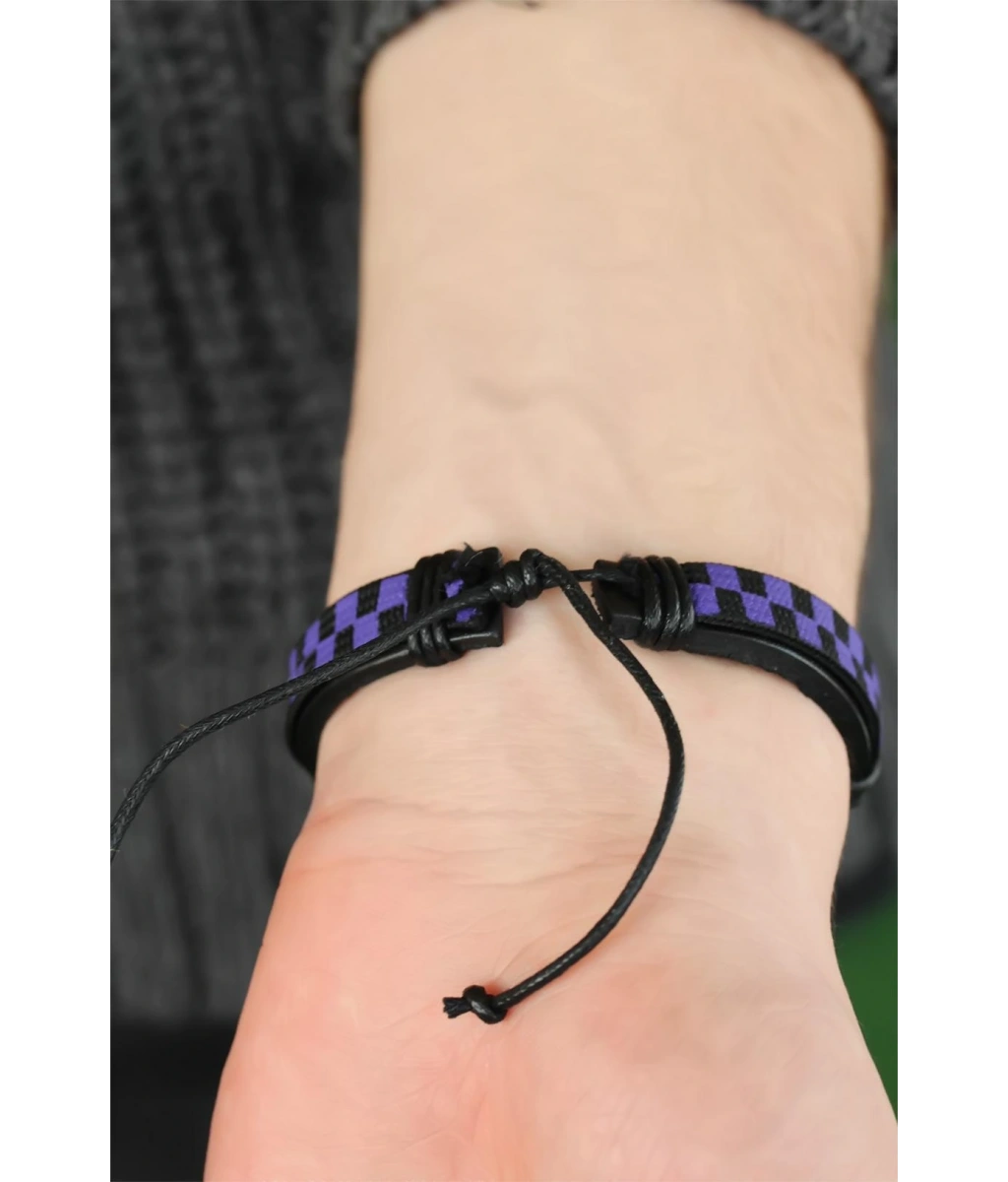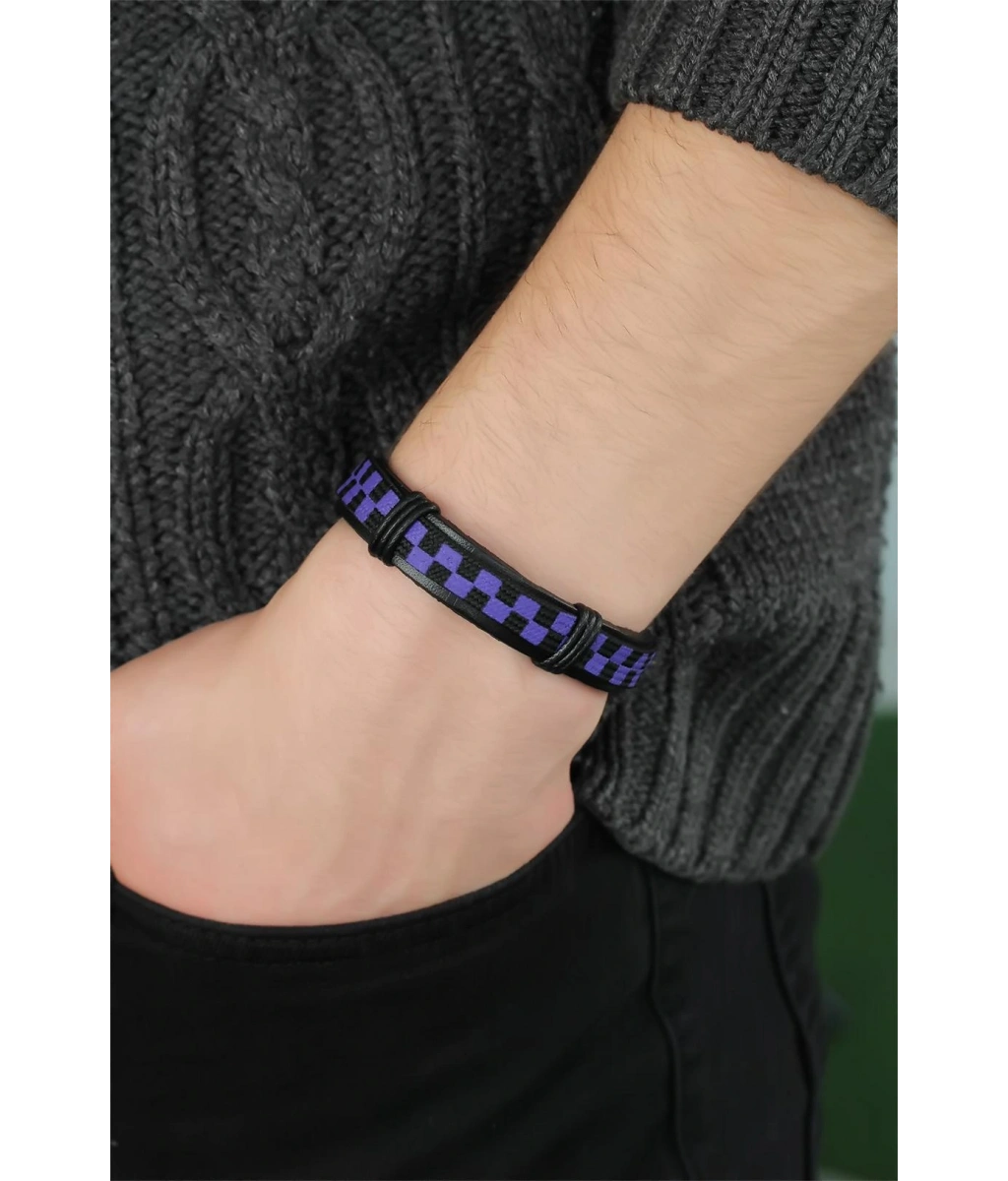 Kendinizi Mor Renk Damalı Deri Erkek Bileklik ile her zaman şık göreceksiniz