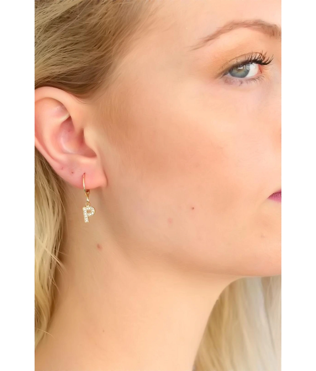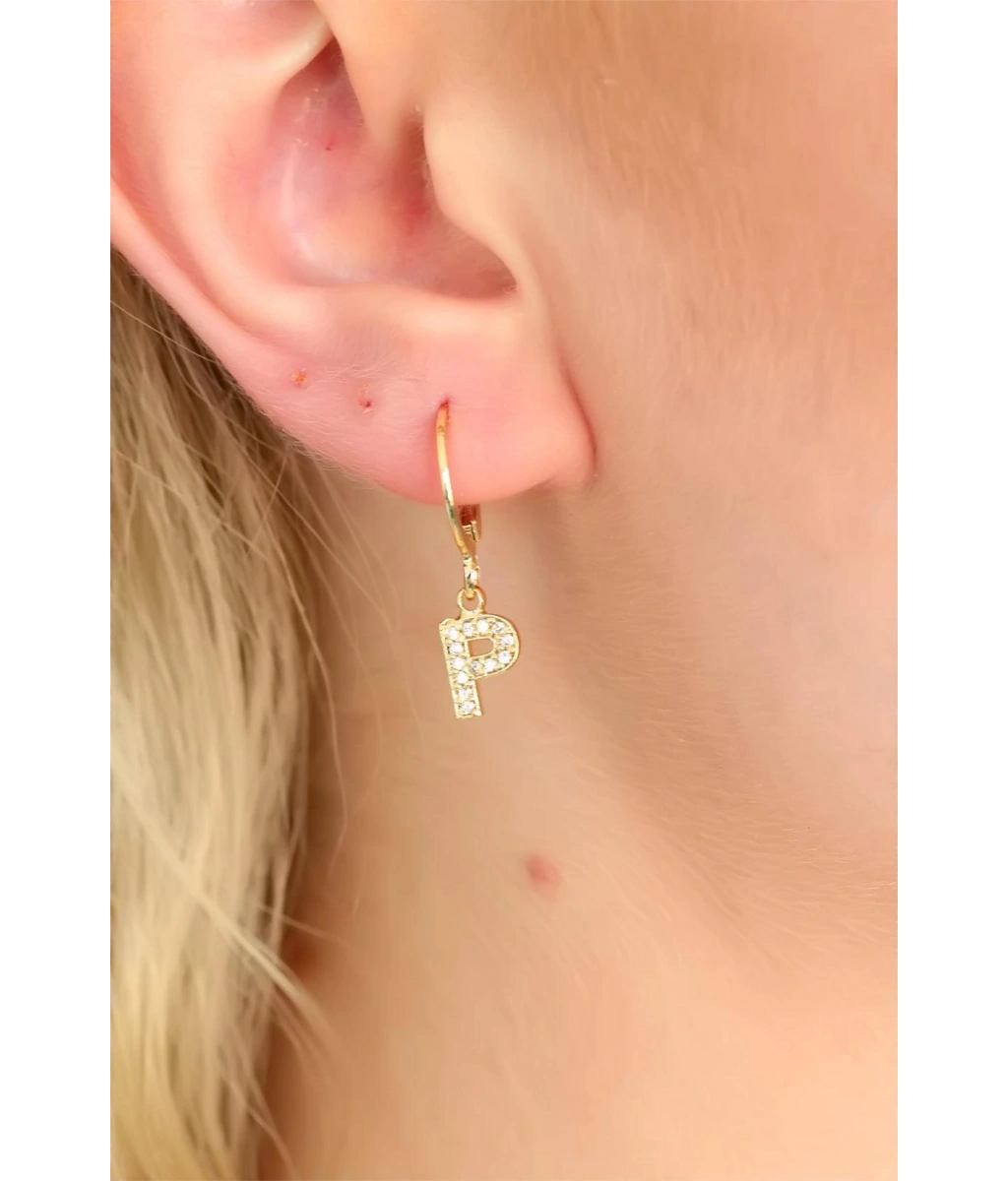 Gold Renk Zirkon Taşlı P Harf Bayan Küpe