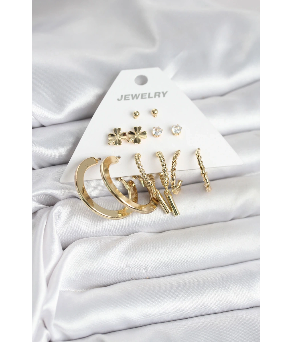 Shoecide Gold Renk 6 Çift Pirinç Kadın Küpe Seti