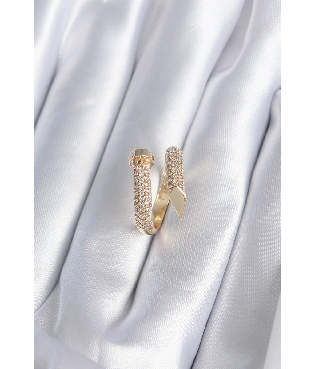 Shoecide Pirinç Gold Renk Zirkon Taş Detaylı Yılan Model Ayarlanabilir Yüzük