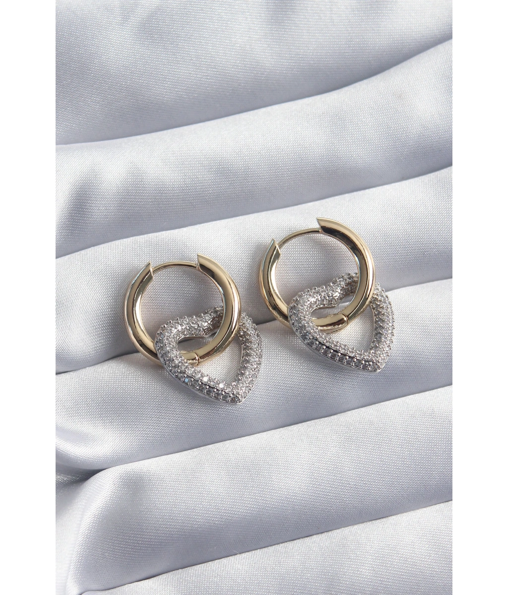 Shoecide Pirinç Gold Renk Halka Gümüş Zirkon Taşlı Kalp Model Vip Seri Kadın Küpe
