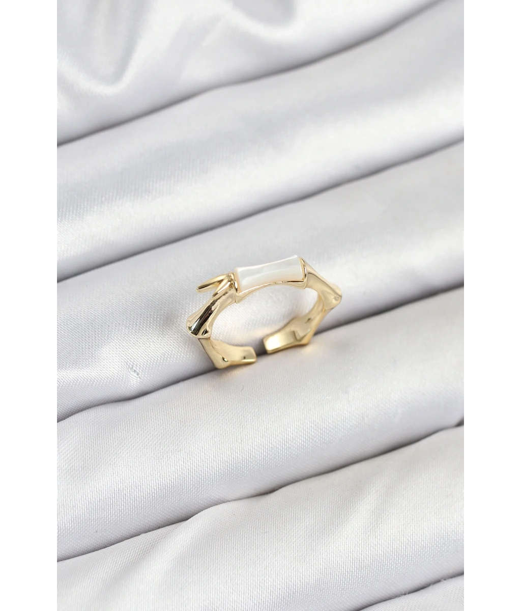 Shoecide Pirinç Gold Renk Beyaz Gül Model Ayarlanabilir Kadın Yüzük