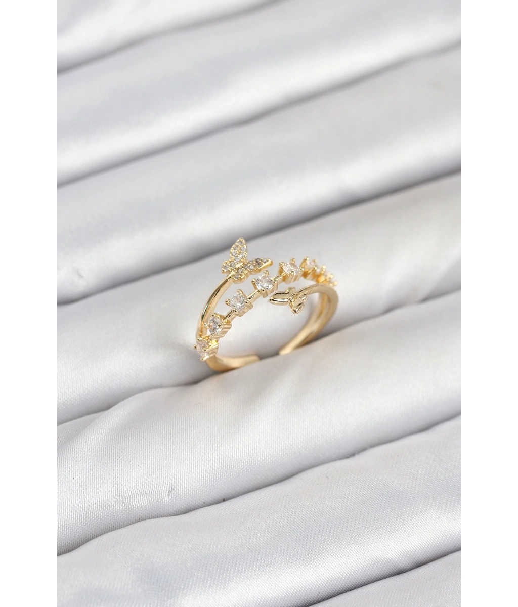 Shoecide Pirinç Gold Renk Zirkon Taşlı Kelebek Model Kadın Yüzük