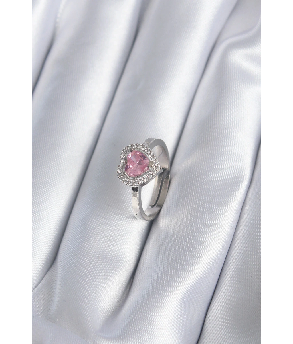 Shoecide Pirinç Gümüş Renk Pembe Zirkon Taşlı Charm Model Kadın Yüzük