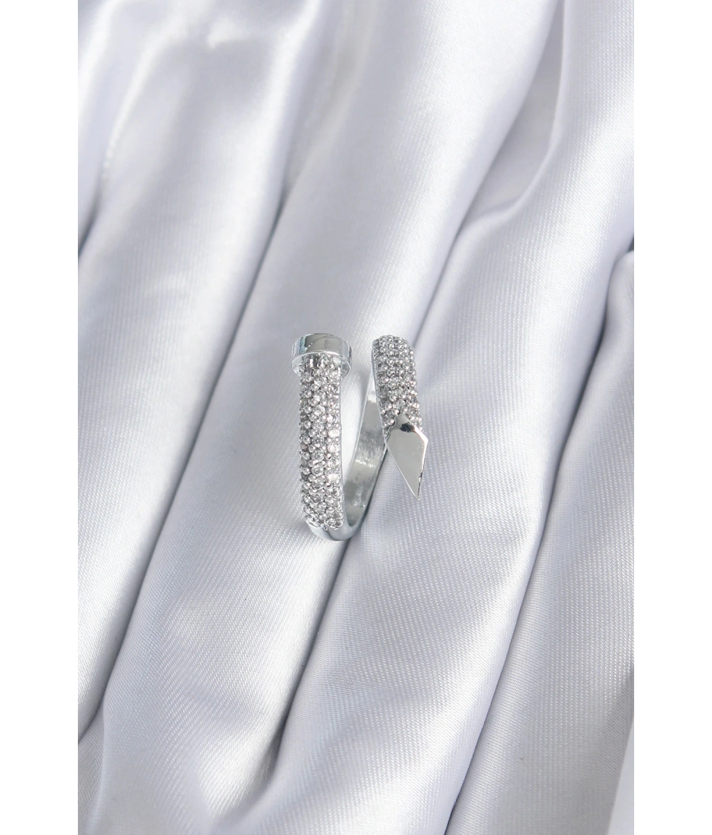 Shoecide Pirinç Gümüş Renk Zirkon Taşlı Çivi Model Kadın Yüzük