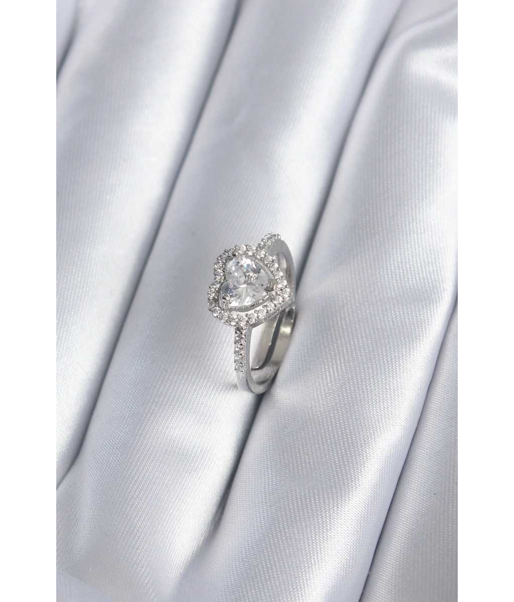 Shoecide Pirinç Gümüş Renk Zirkon Taşlı Kalp Charm Model Kadın Yüzük