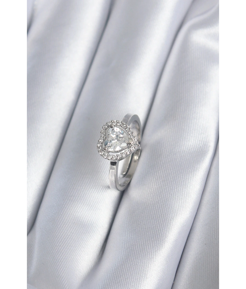 Shoecide Pirinç Gümüş Renk Zirkon Taşlı Kalp Charm Model Kadın Yüzük