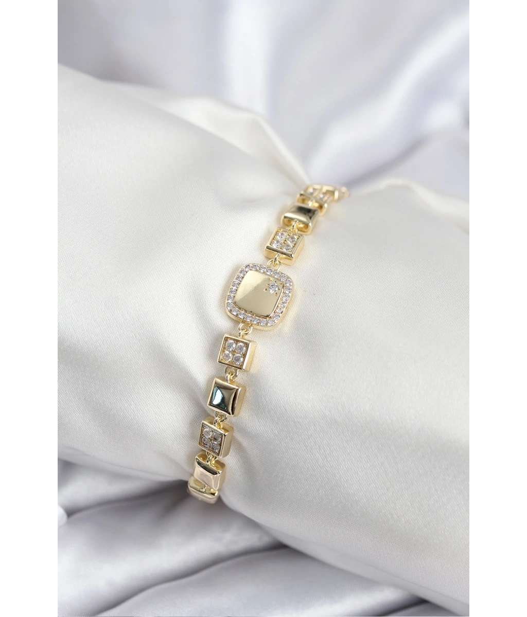 Shoecide Pirinç Vıp Seri Gold Renk Zirkon Taşlı Model Kadın Bileklik