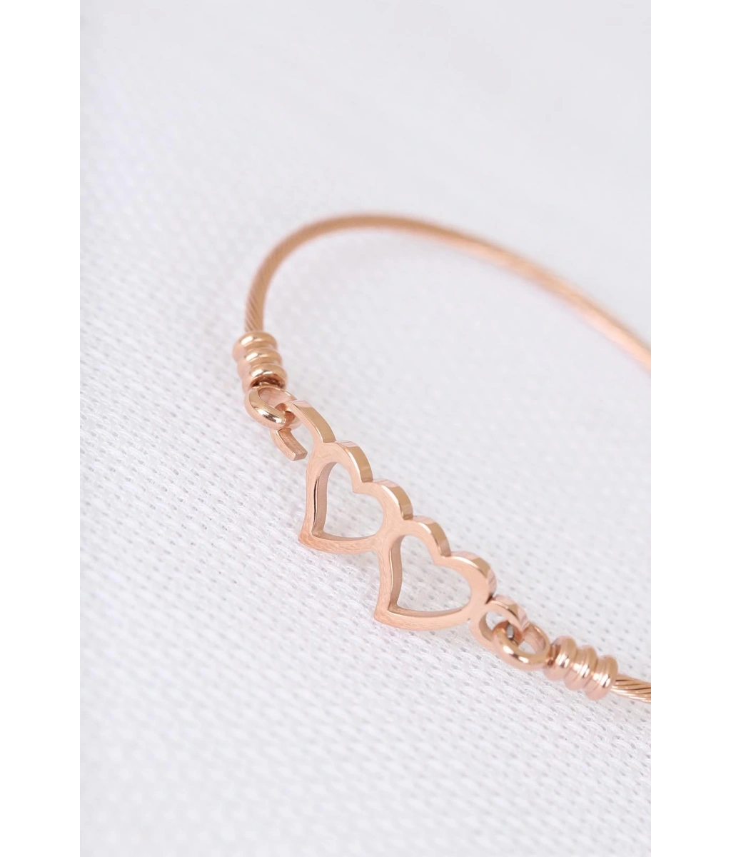 Shoecide Rose Çelik Çift Kalp Figürlü Erkek Kelepçe Bileklik