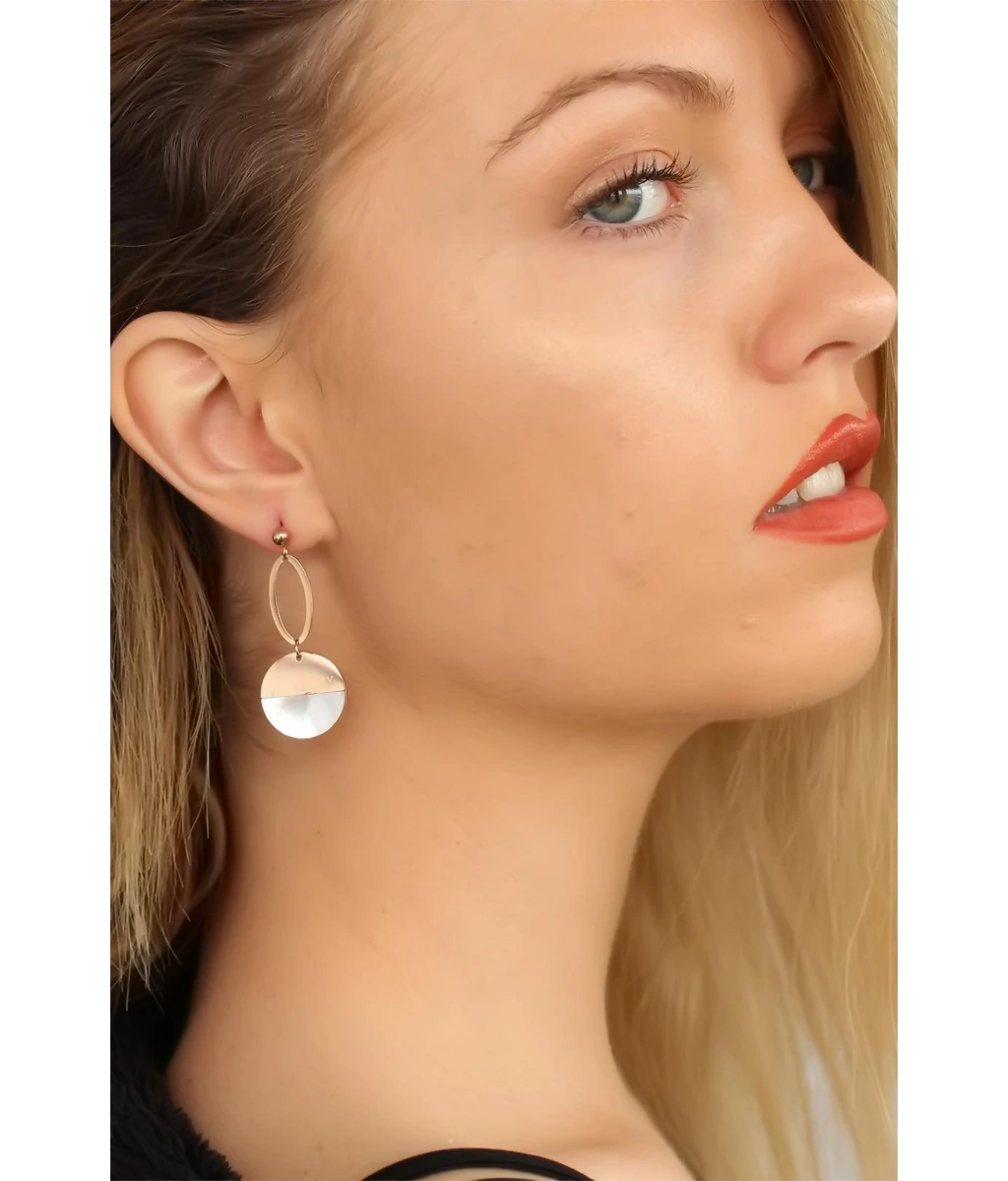 Shoecide Sallantılı Krem Mineli Gold Renk Kadın Küpe
