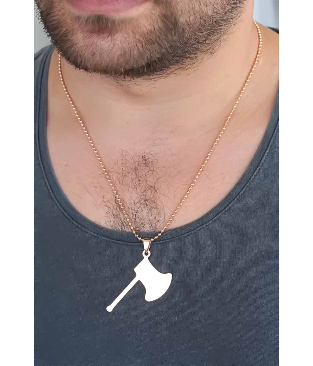 Havalı beyler için Rose Renk Metal Balta Figürlü Erkek Kolye modeli doğru bir seçim olacak.