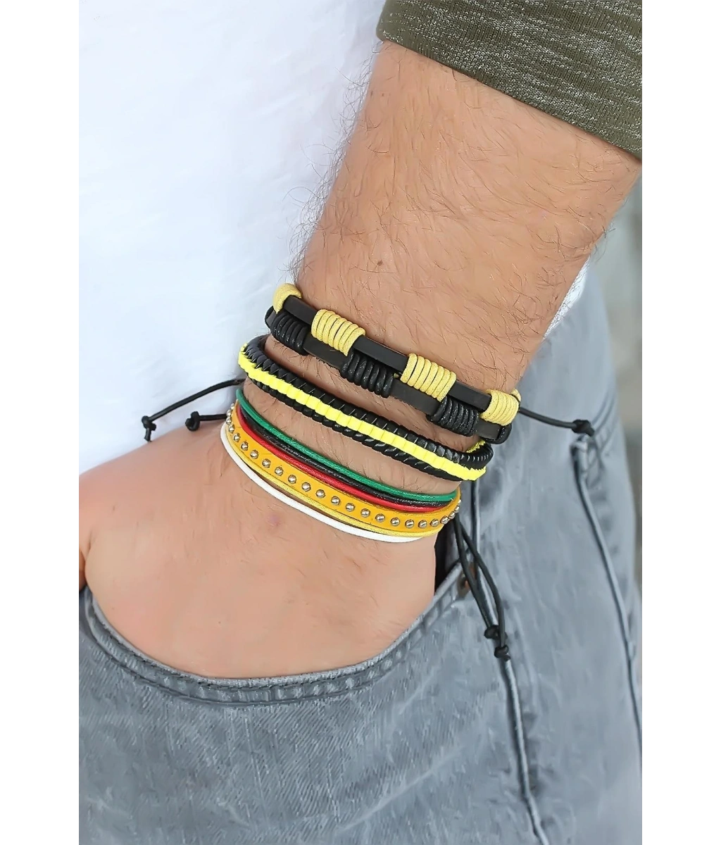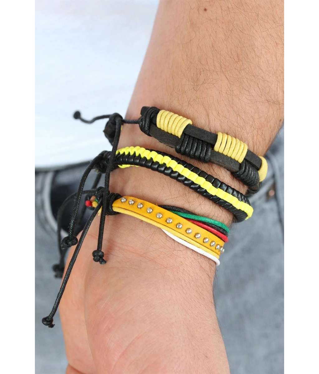 Kombinlerinizi Sarı Renk Zımbalı Deri Erkek Bileklik Kombini ile detaylandırın.