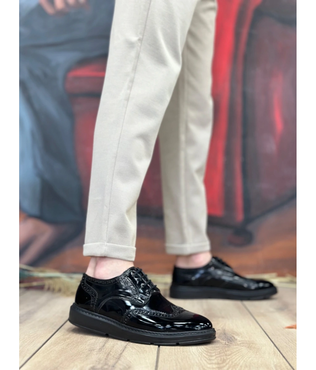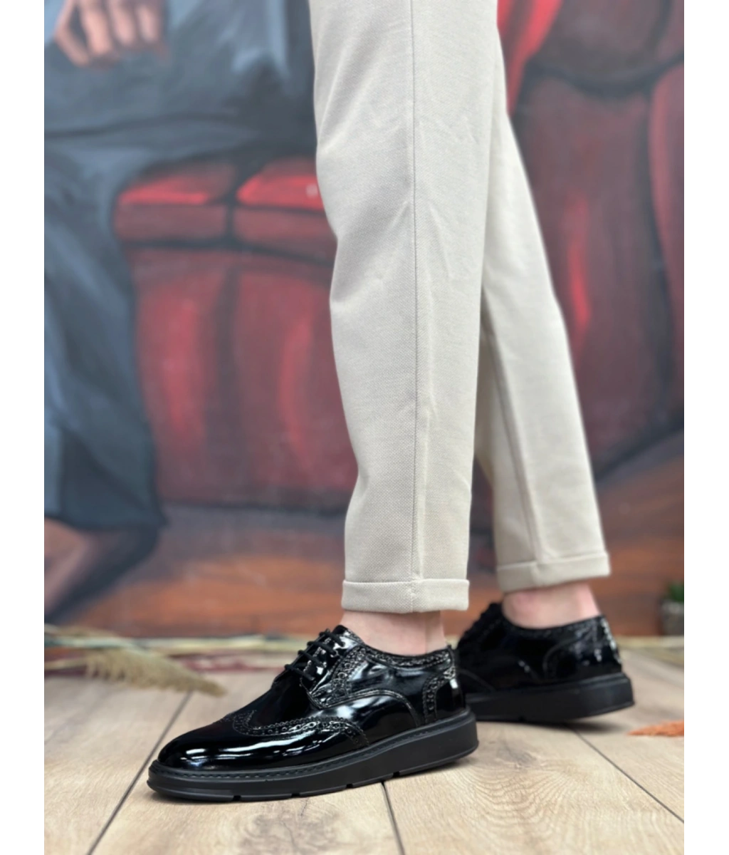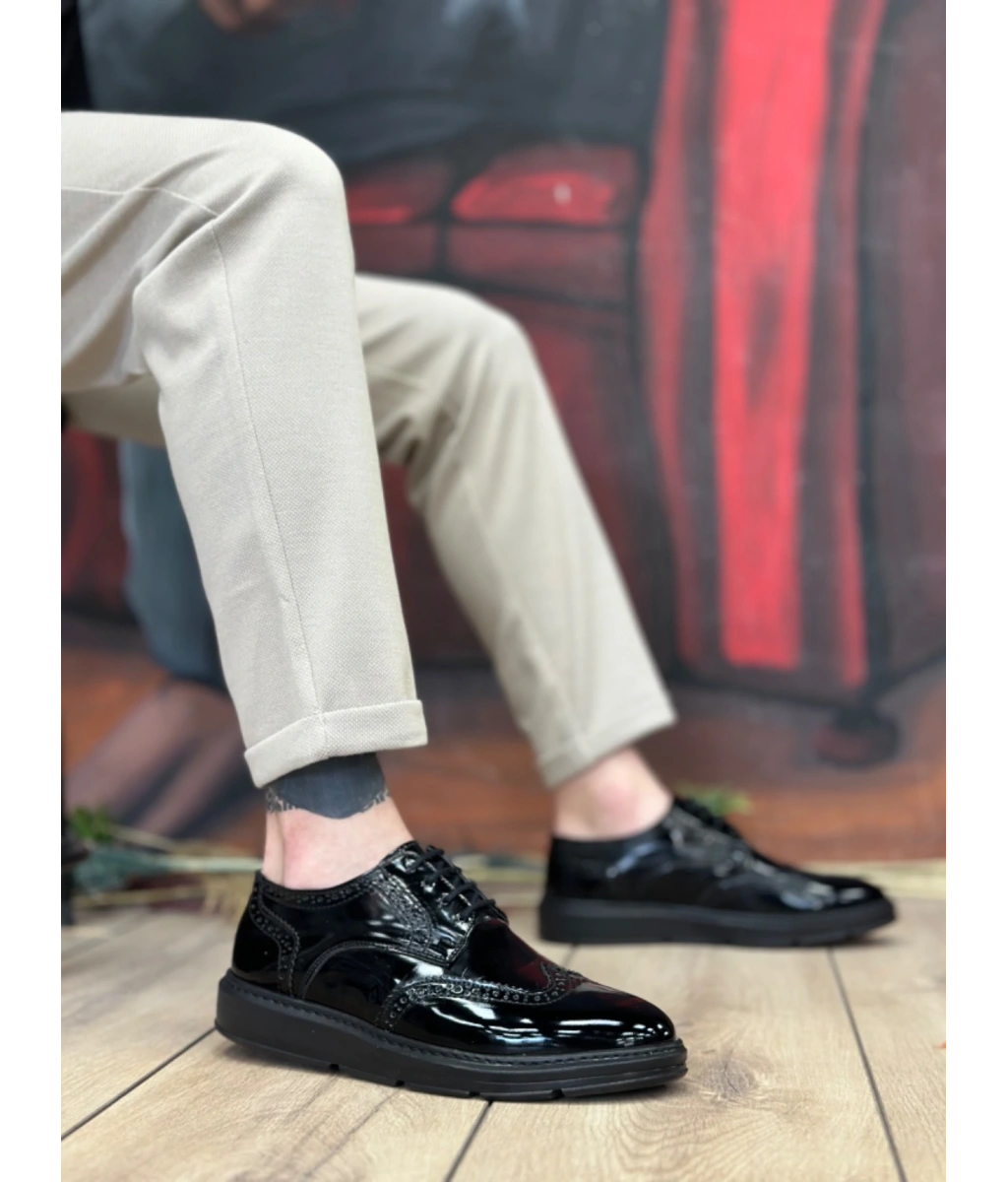 Shoecide Sb0003 Bağcıklı Klasik Siyah Taban Rugan Yüksek Taban Casual Erkek Ayakkabı