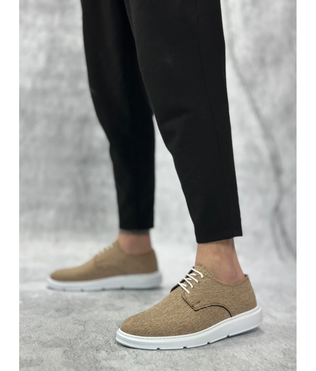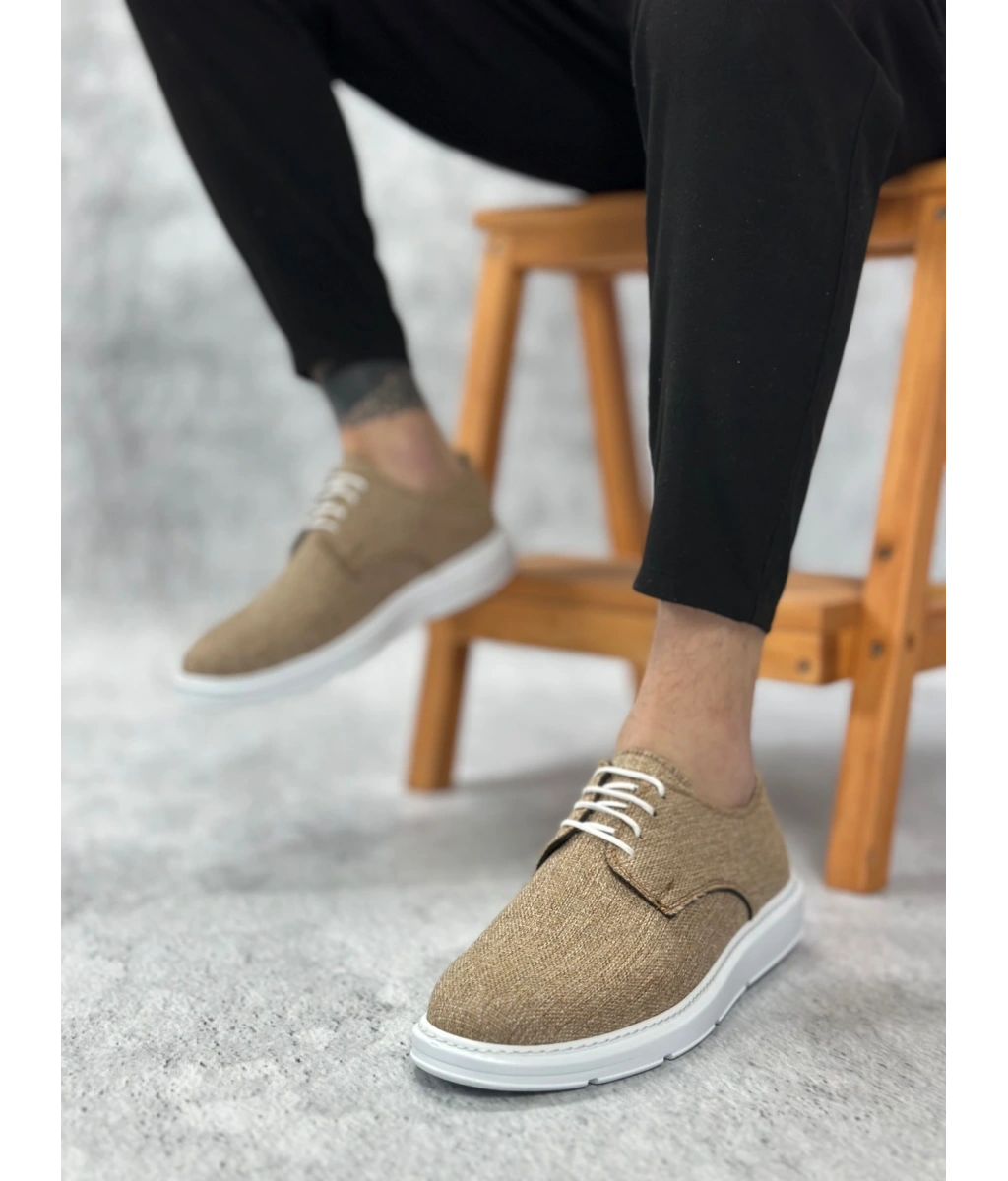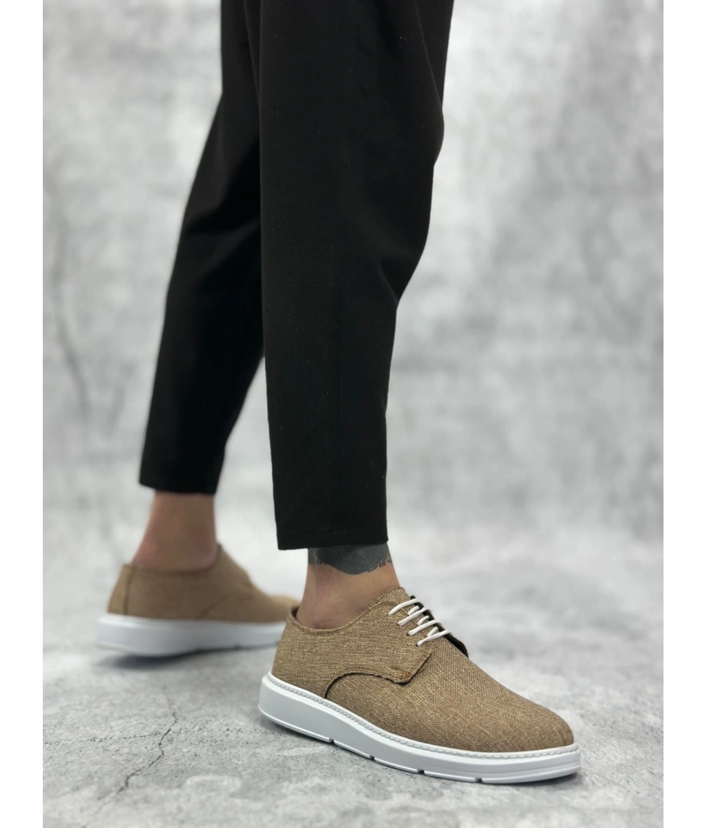 Shoecide Sb0003 Bağcıklı Klasik Spor Keten Hardal Beyaz Taban Casual Erkek Ayakkabı