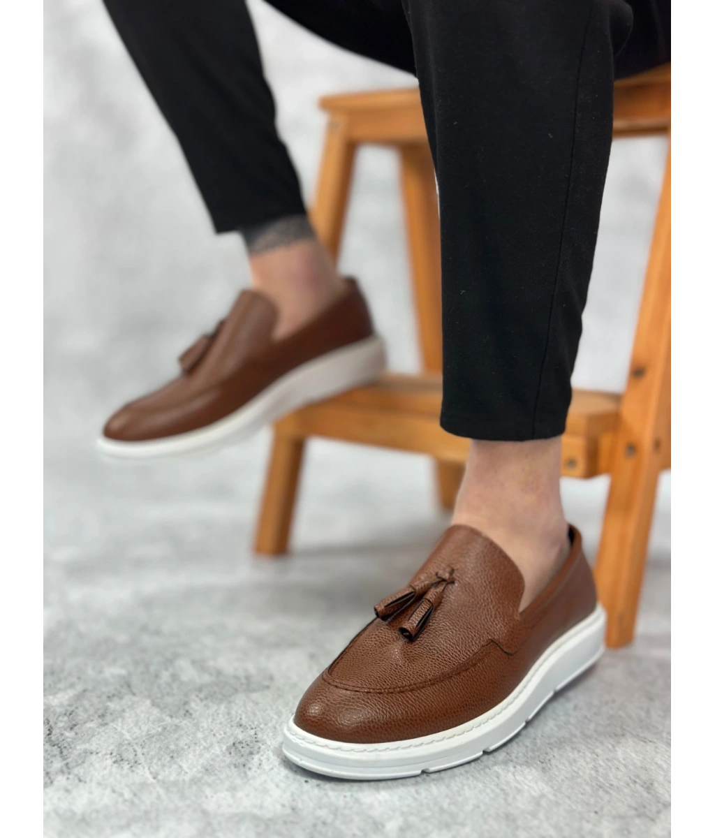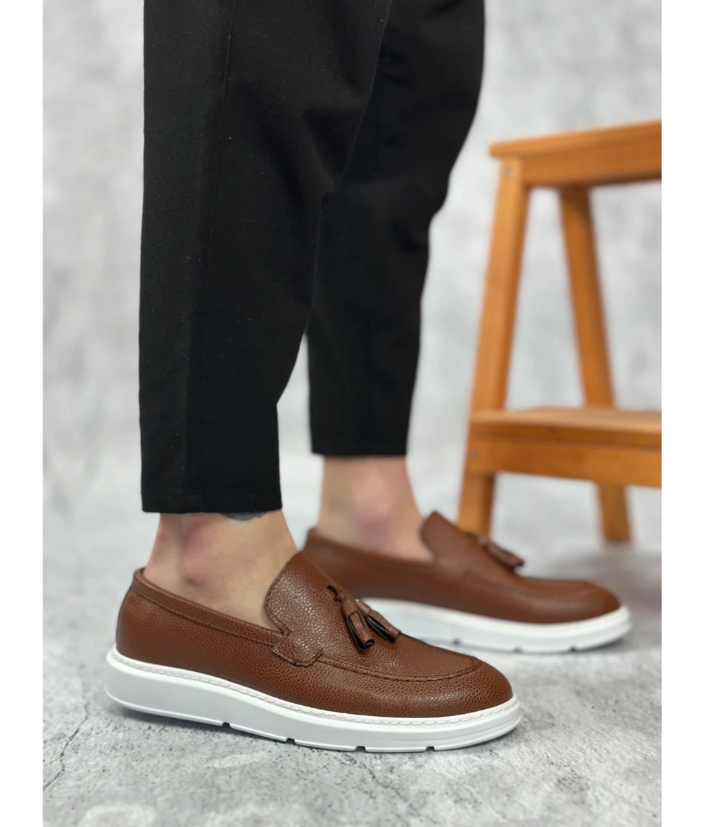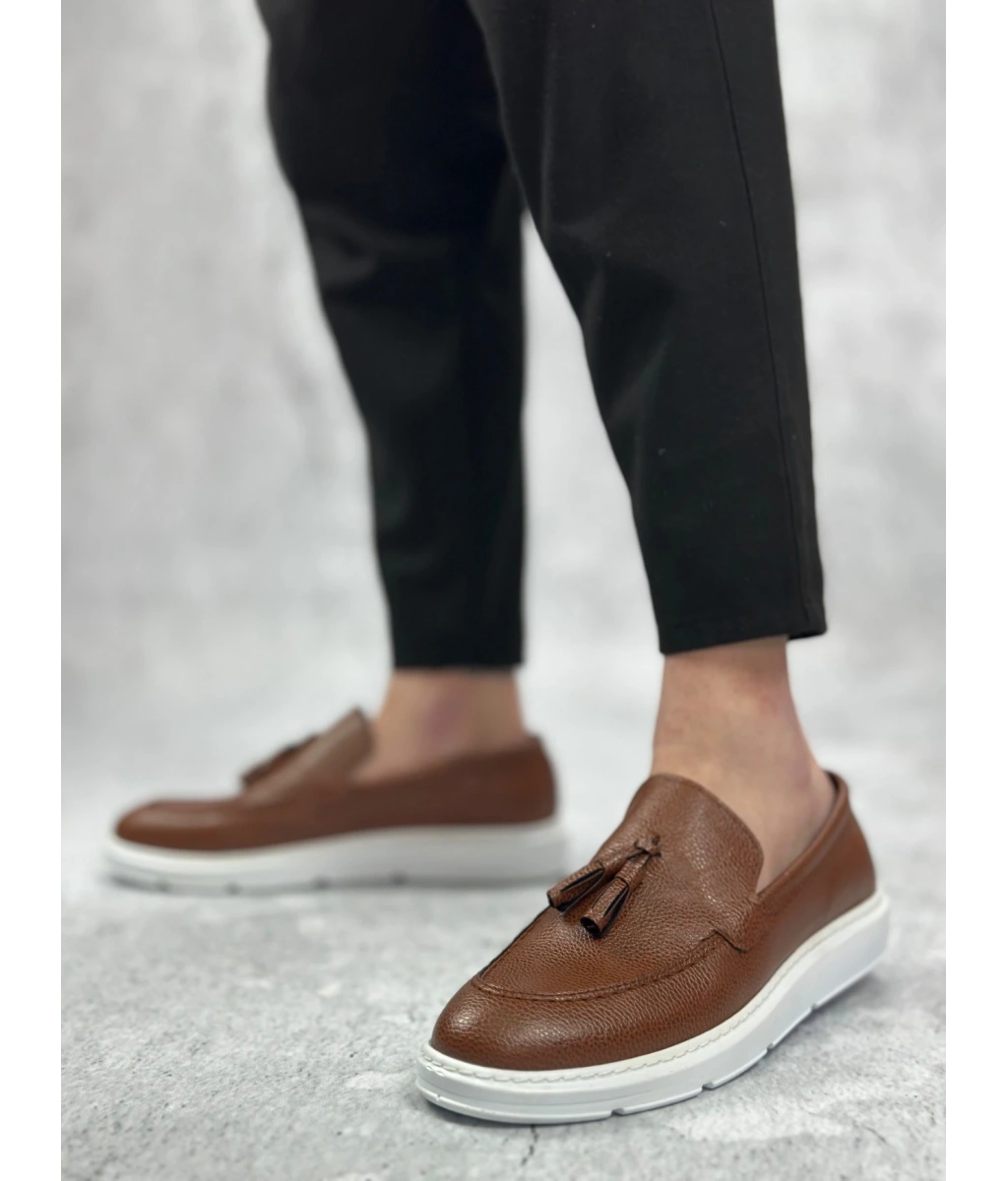 Shoecide Sb0005 Bağcıksız Yüksek Taban Klasik Püsküllü Taba Cilt Corcik Erkek Ayakkabı