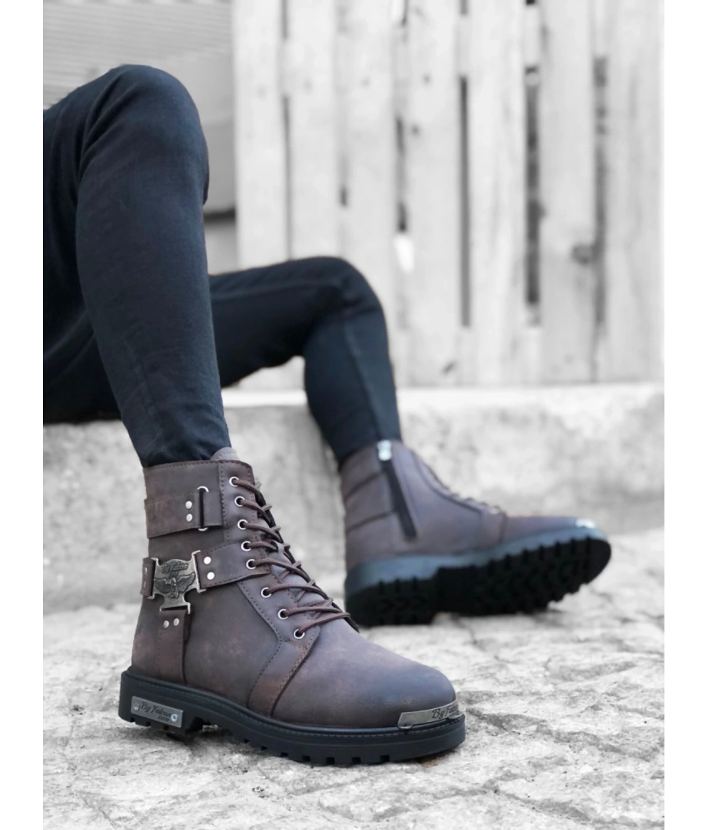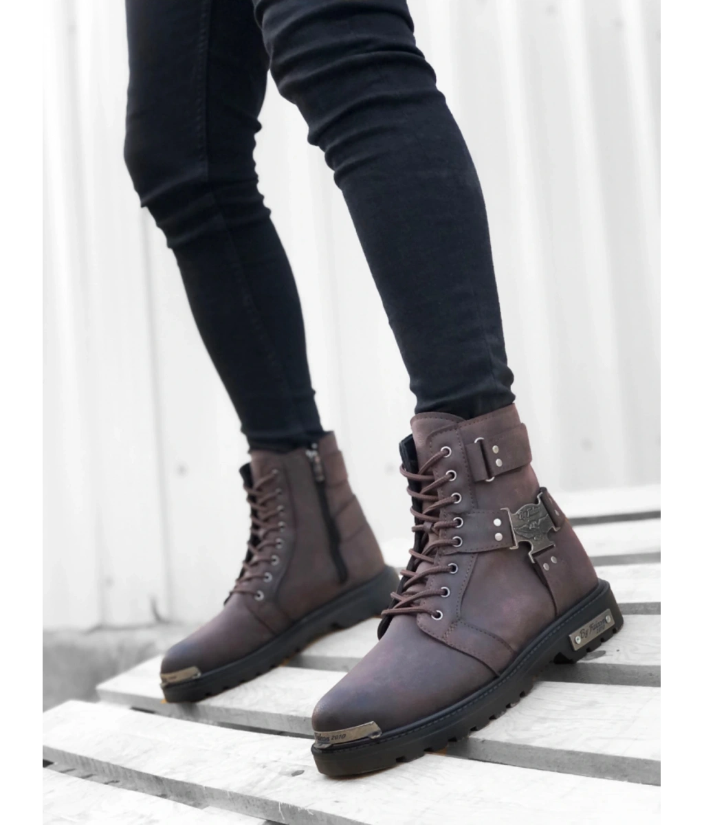 Shoecide Sb0080 Gladyatör Fermuarlı Tokalı Kahverengi Erkek Klasik Spor Klasik Yarım Bilek Bot