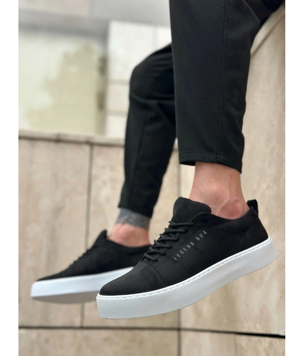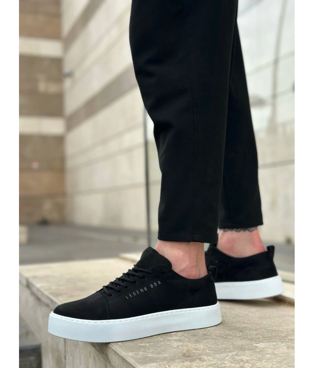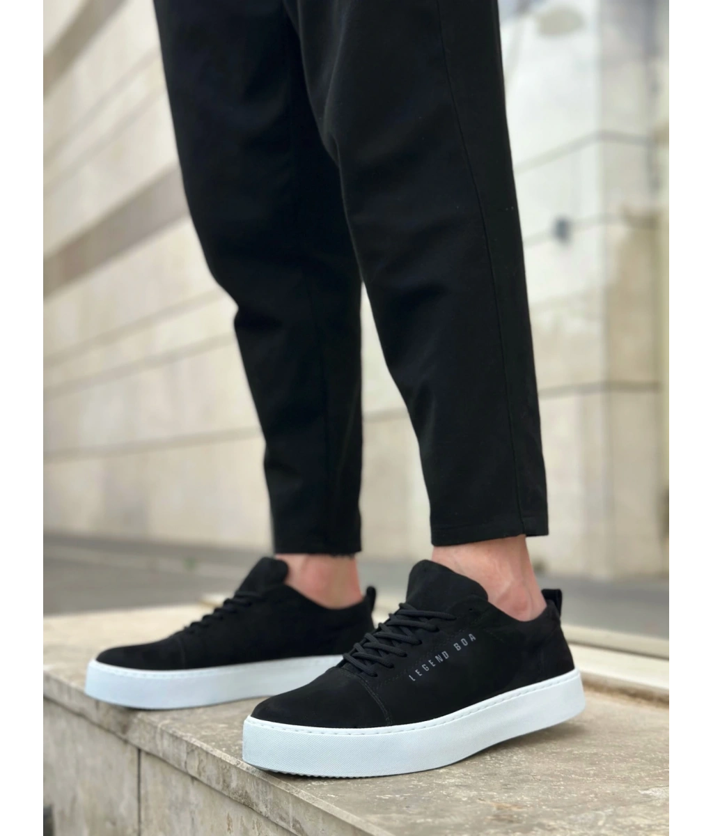 Shoecide Sb0104 Bağcıklı Siyah Süet Beyaz Taban Spor Klasik Erkek Ayakkabı