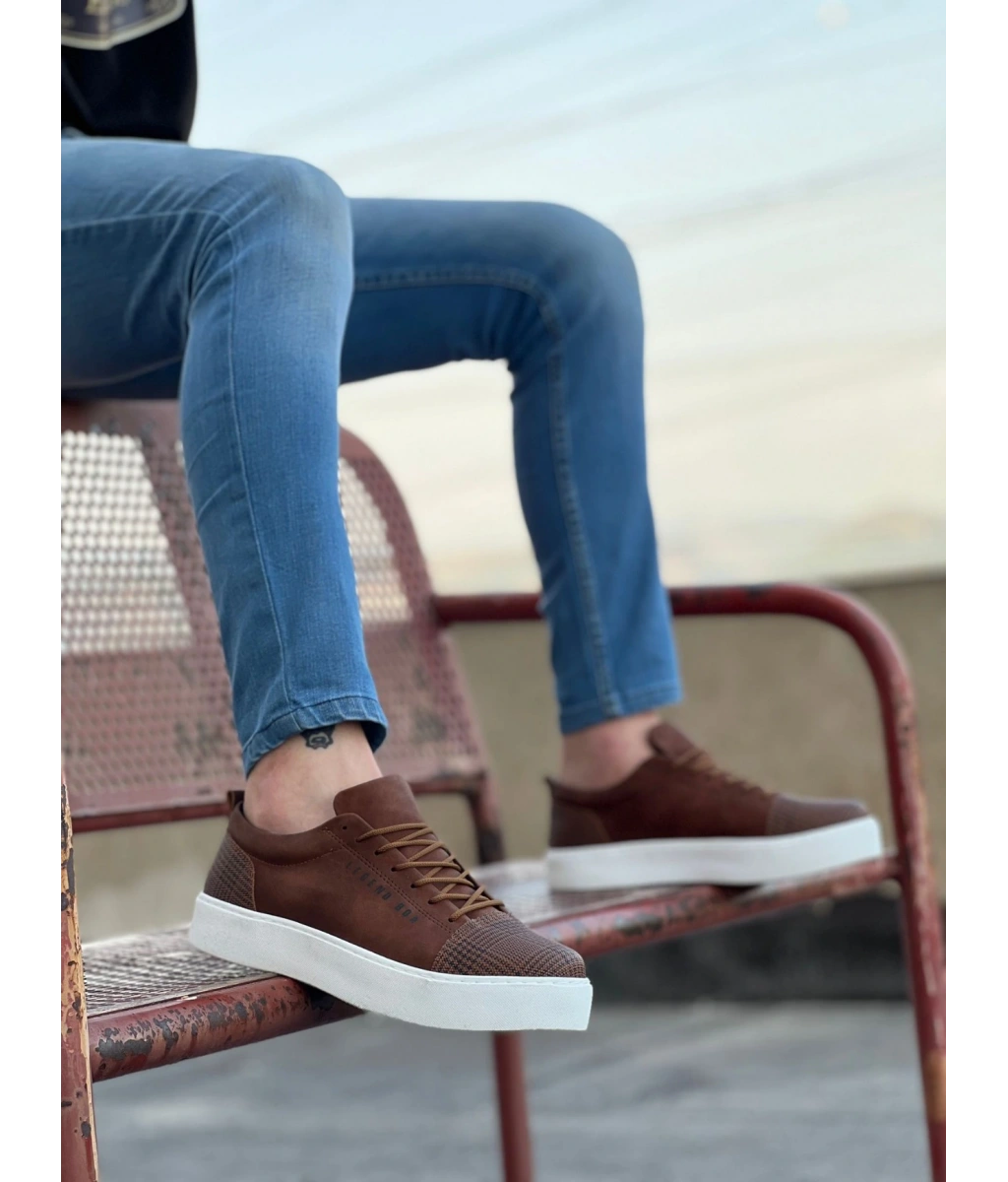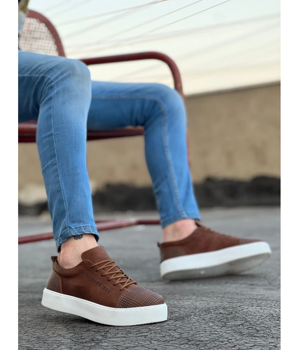 Shoecide Sb0104 Bağcıklı Taba Ekose Spor Klasik Erkek Ayakkabı