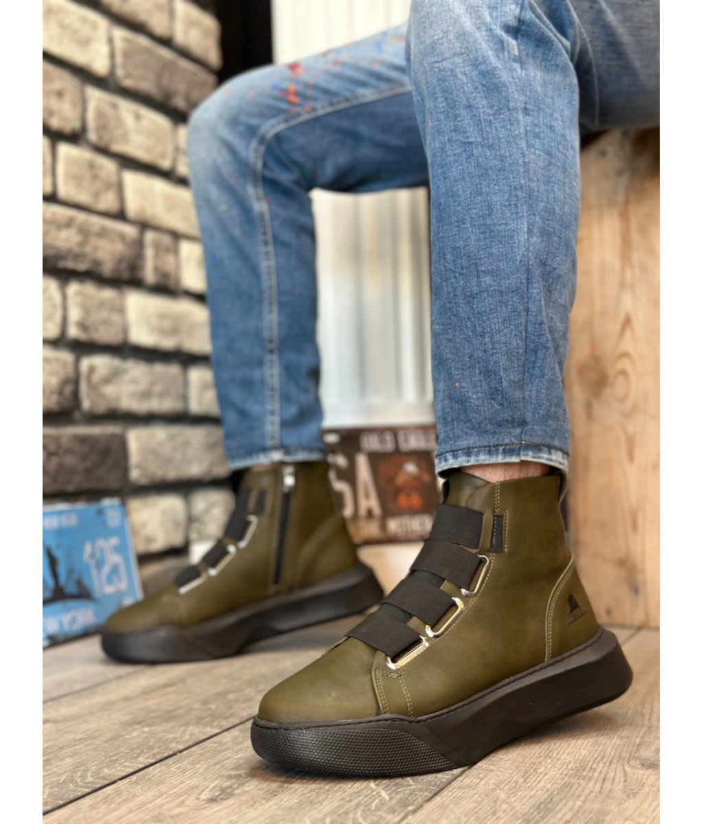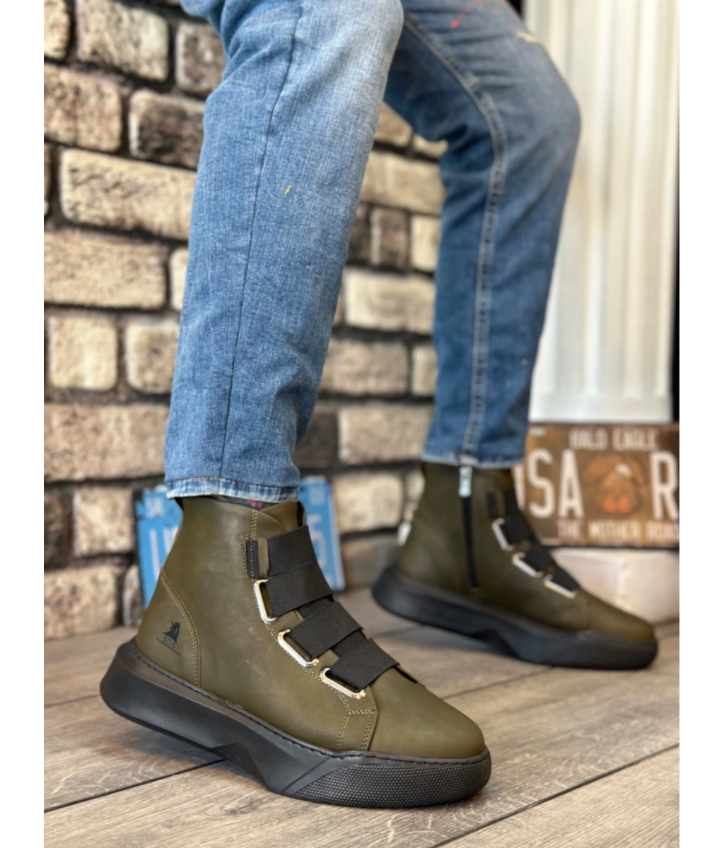 Shoecide Sb0142 Bantlı Erkek Yüksek Taban Haki Spor Bot