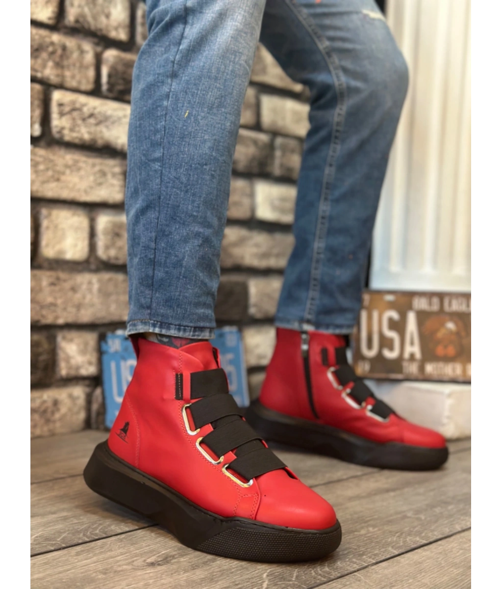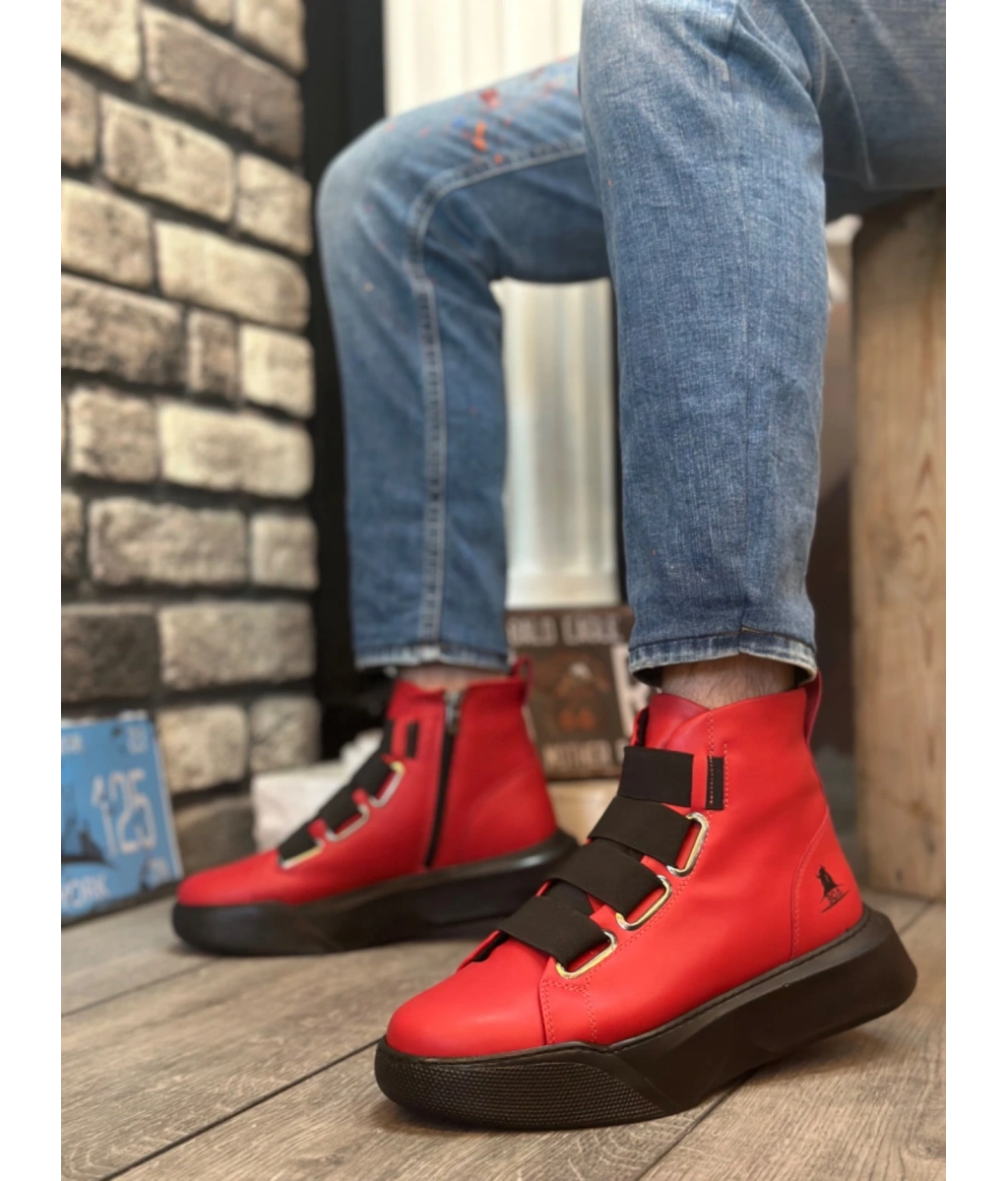 Shoecide Sb0142 Bantlı Erkek Yüksek Taban Kırmızı Spor Bot