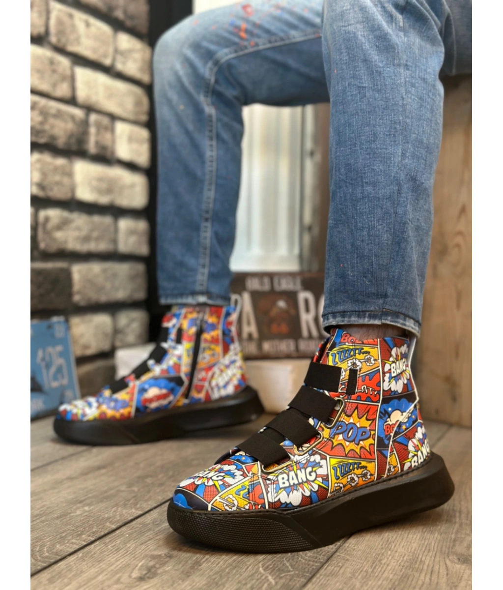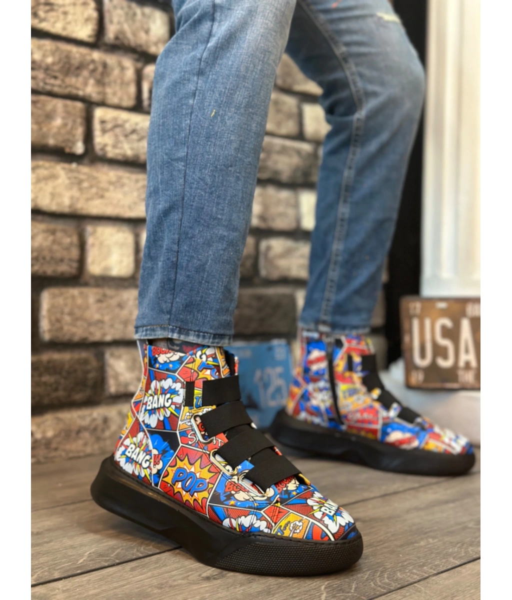 Shoecide Sb0142 Bantlı Erkek Yüksek Taban Popart Model Spor Bot